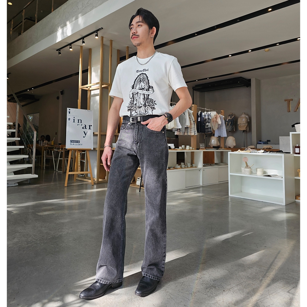 Golden Zebra Jeans กางเกงยีนส์ชายแฟชั่นขากระบอกใหญ่ฟอกเทาดำ ผ้าซุปเปอร์แบล็คฟอกนิ่ม #219BK