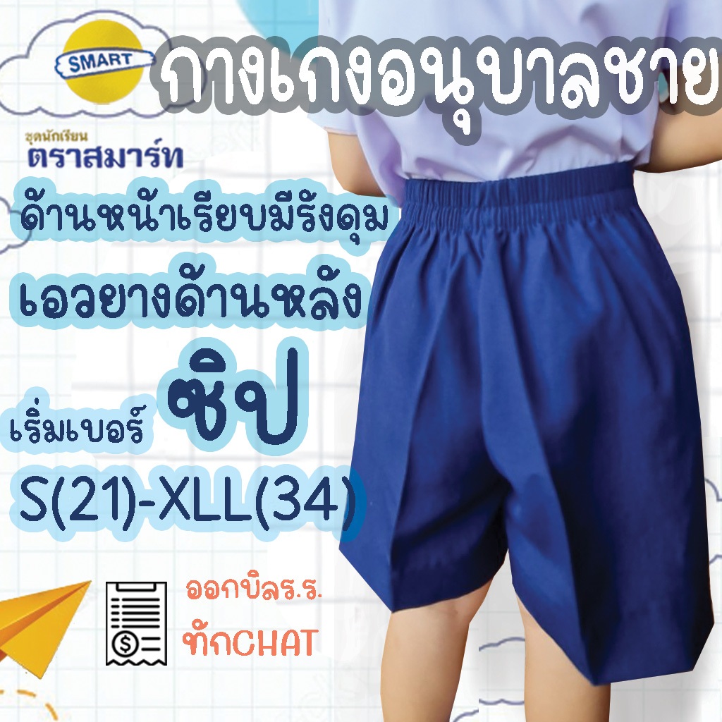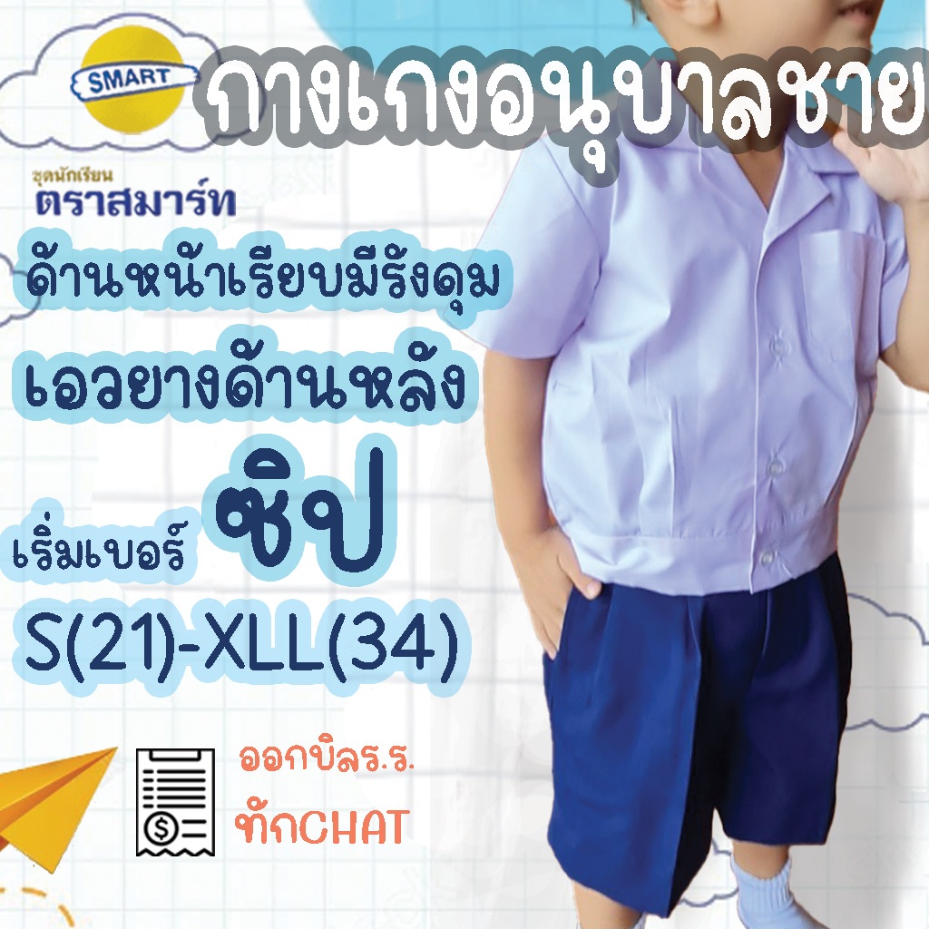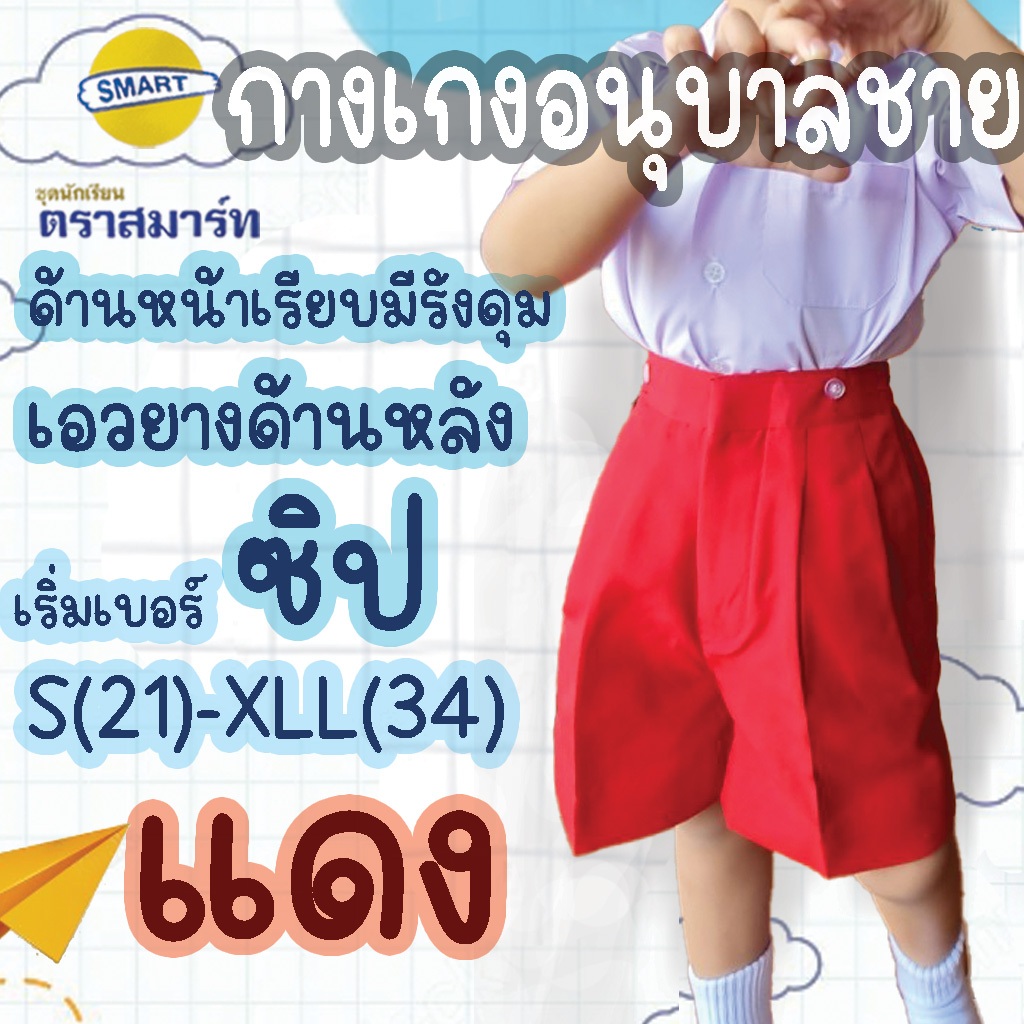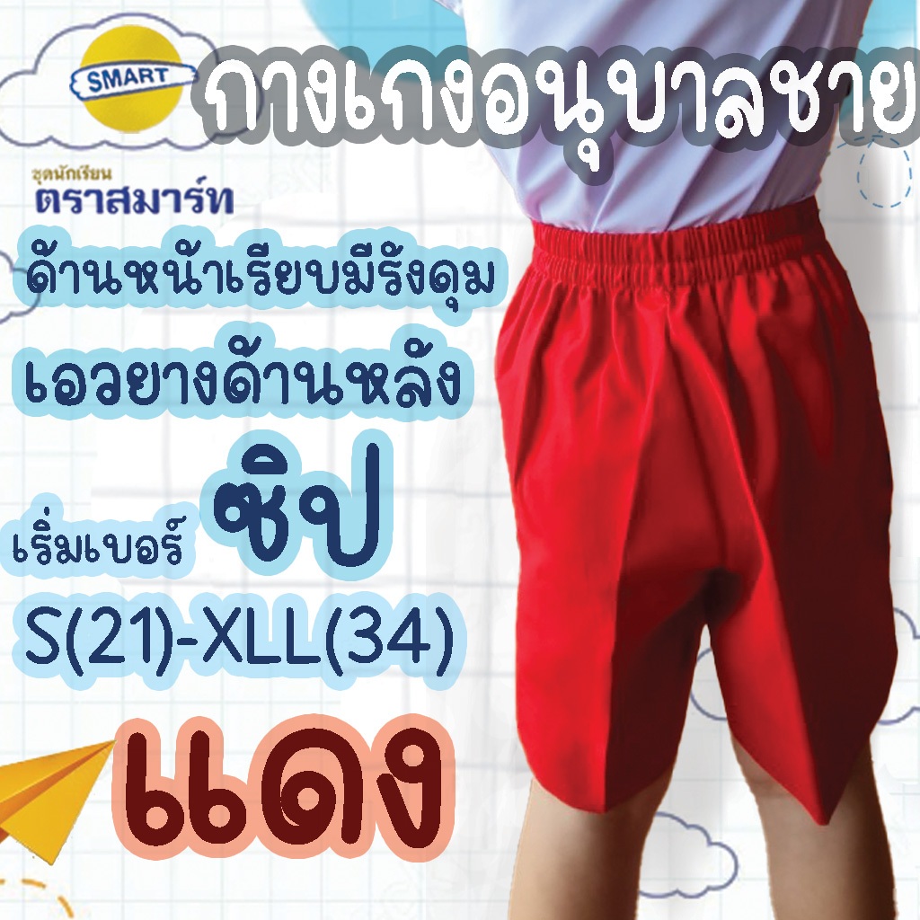 กางเกงอนุบาลชาย สีกรมอ่อน สีแดง ผ้าโทเร ตราสมาร์ท SMART เอวยางยืดหลัง