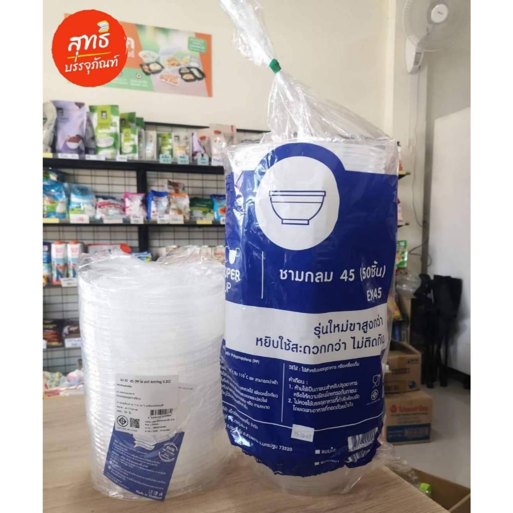 SUPER CUP ชามพลาสติก PP --- EX45 (มีฝาขายแยก) / EX-52 (บรรจุ 50ใบ)