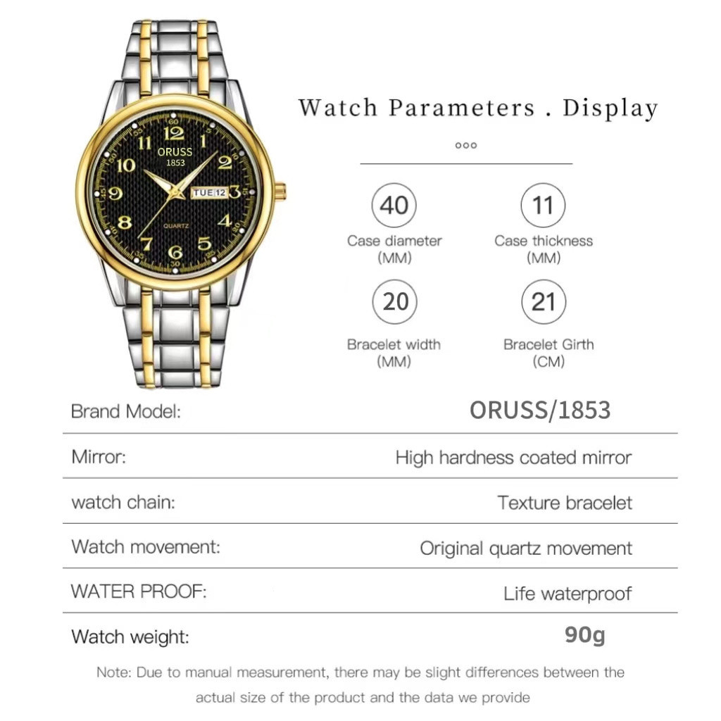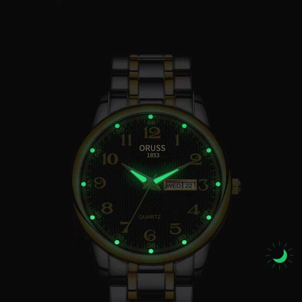 ORUSS รัส ต้นฉบับสแตนเลสปฏิทินคู่กันน้ําส่องสว่างนาฬิกาผู้ชายธุรกิจหรูหราทองแฟชั่นเกาหลีรุ่นเงินนาฬิกาควอตซ์