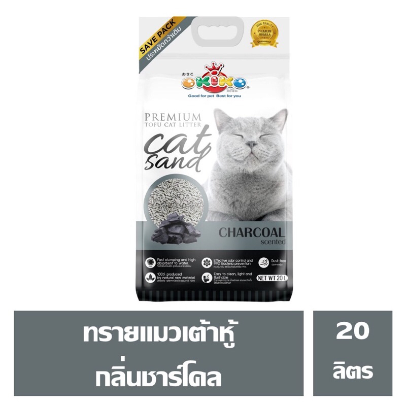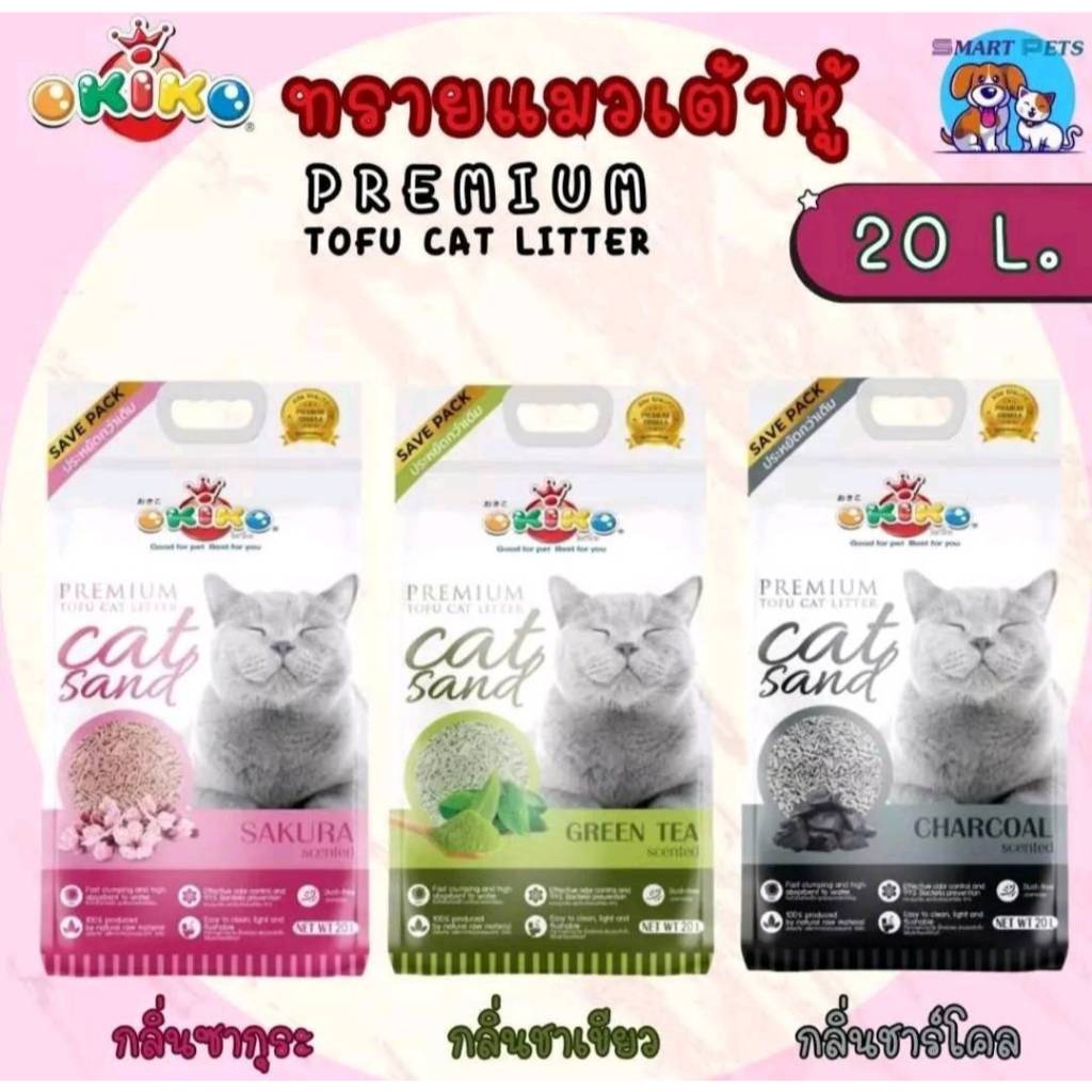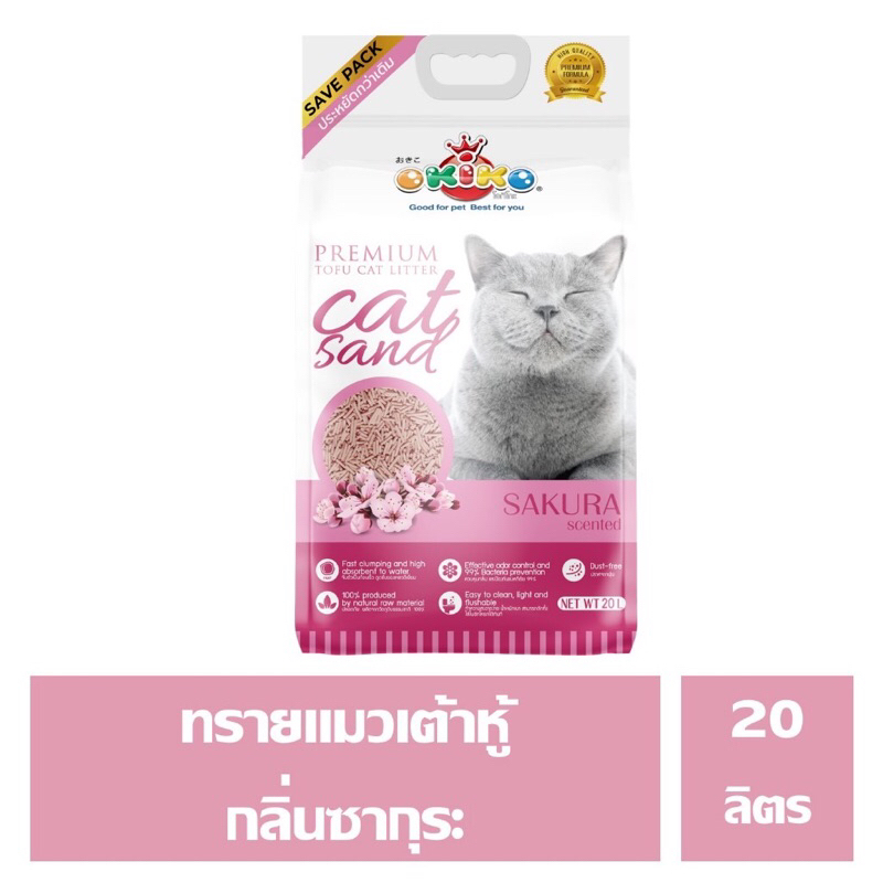 Okiko ทรายแมวเต้าหู้ ขนาด 20 ลิตร ทรายอนามัย ทิ้งชักโครได้