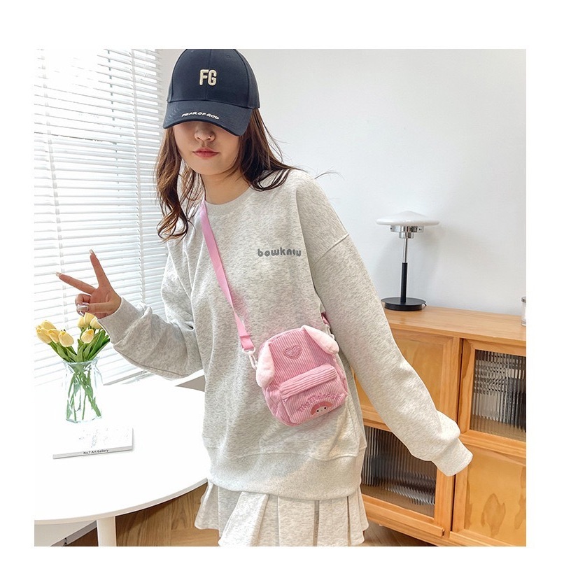 (พร้อมส่ง)CRJ158กระเป๋าสะพายไหล่ ผ้าลูกฟูก ขนาดเล็ก ลายการ์ตูนสุนัขน่ารัก สําหรับเด็กผู้หญิง
