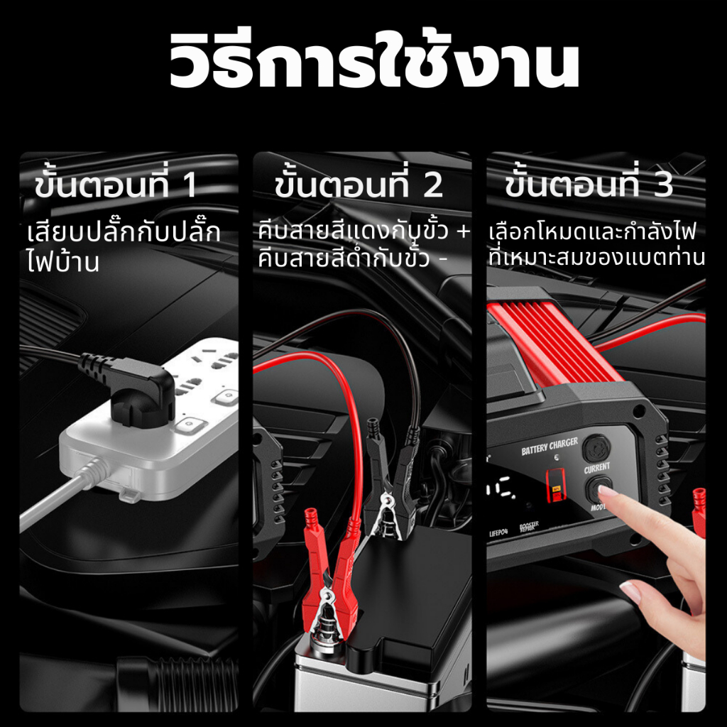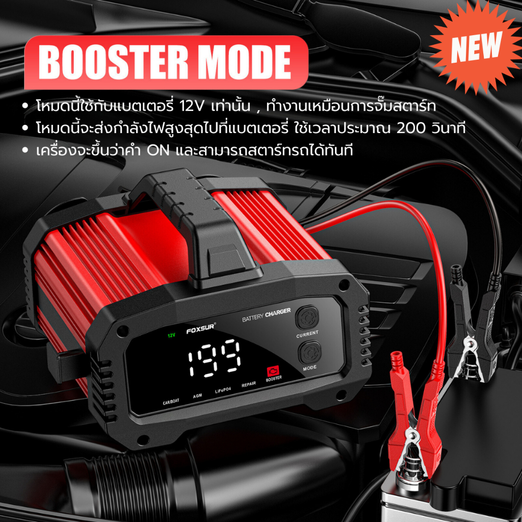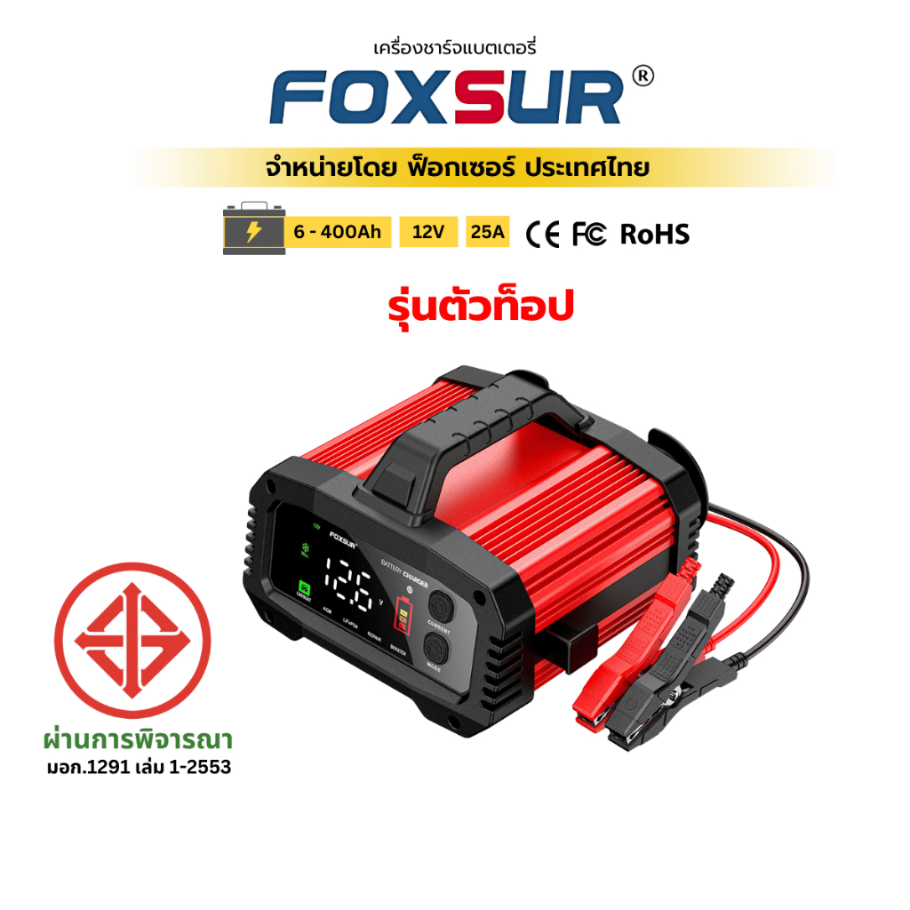 (รุ่นดีสุด) FOXSUR 12V25A ที่ชาร์จแบตรถ จั๊มสตาร์ท รถยนต์ มอไซค์ เรือ รถเครน ผ่าน มอก.