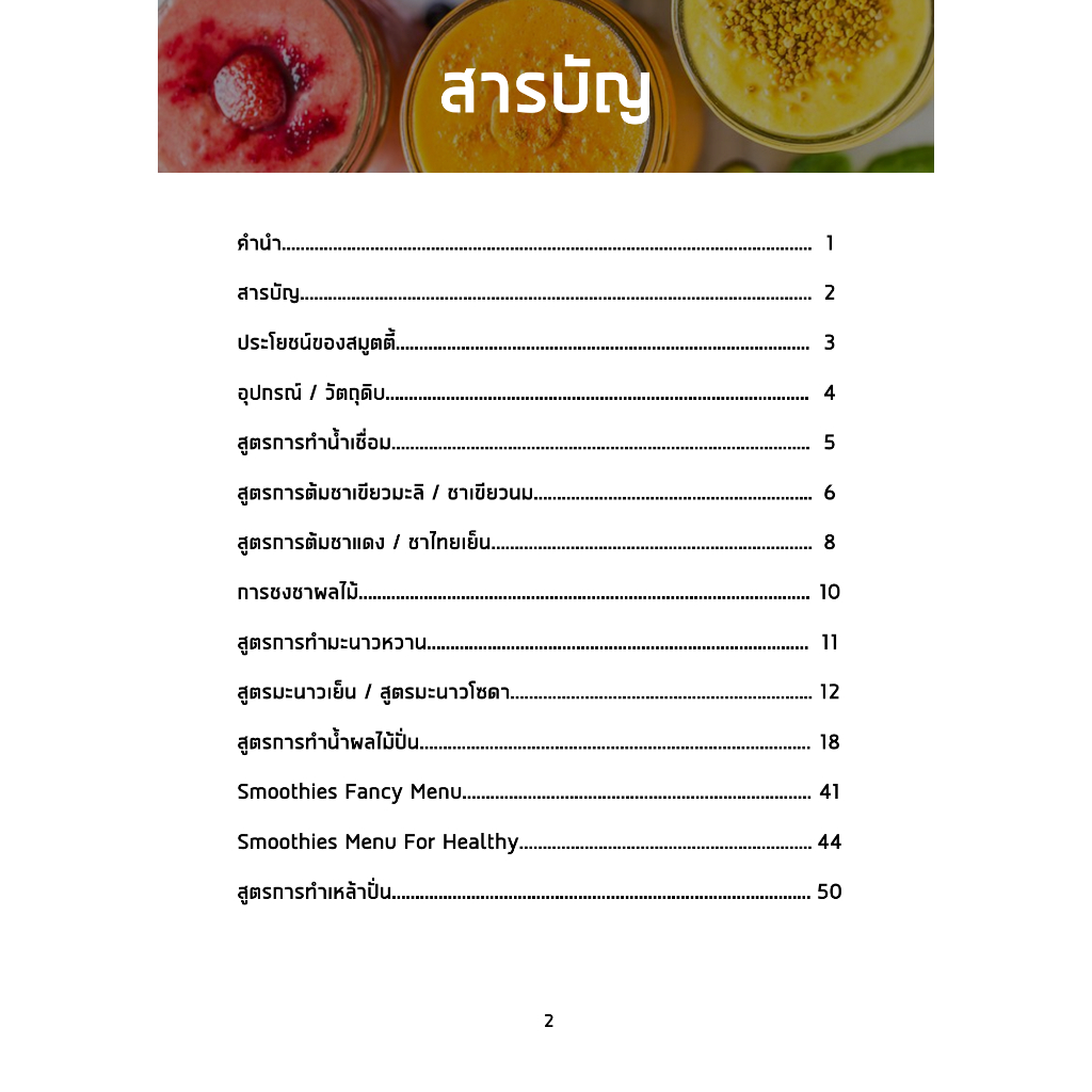 หนังสือสูตรสมูทตี้ รวมสูตรการทำสมูทตี้มากกว่า 50 เมนู เมนูสมูทตี้ ผลไม้ปั่น เมนูสุขภาพ ทำขายได้เลย