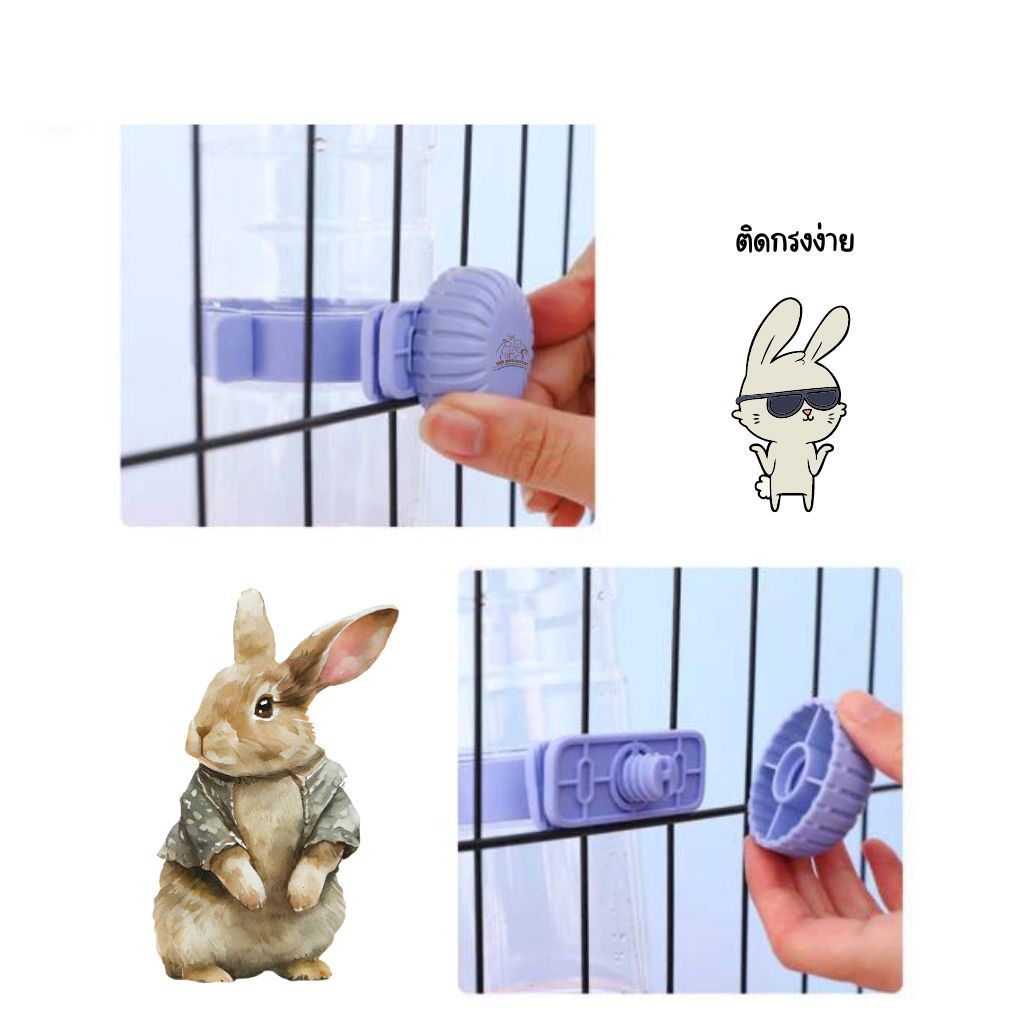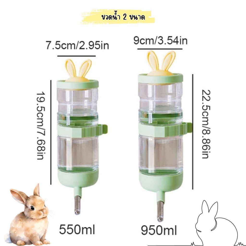ขวดน้ำสัตว์เลี้ยง หูกระต่าย เปิดเติมน้ำด้านบน สำหรับสัตว์เลี้ยง 2 ขนาด 550 ML และ 950 ML (IP)