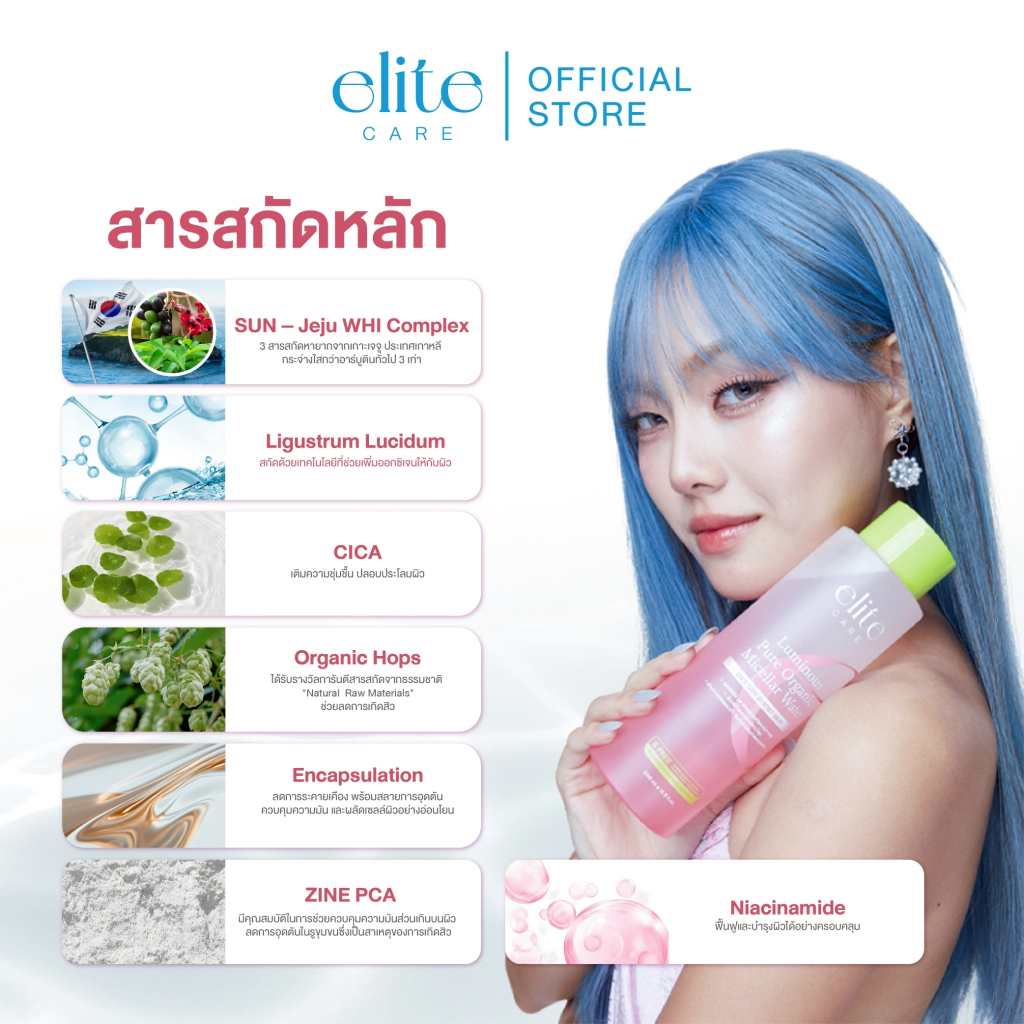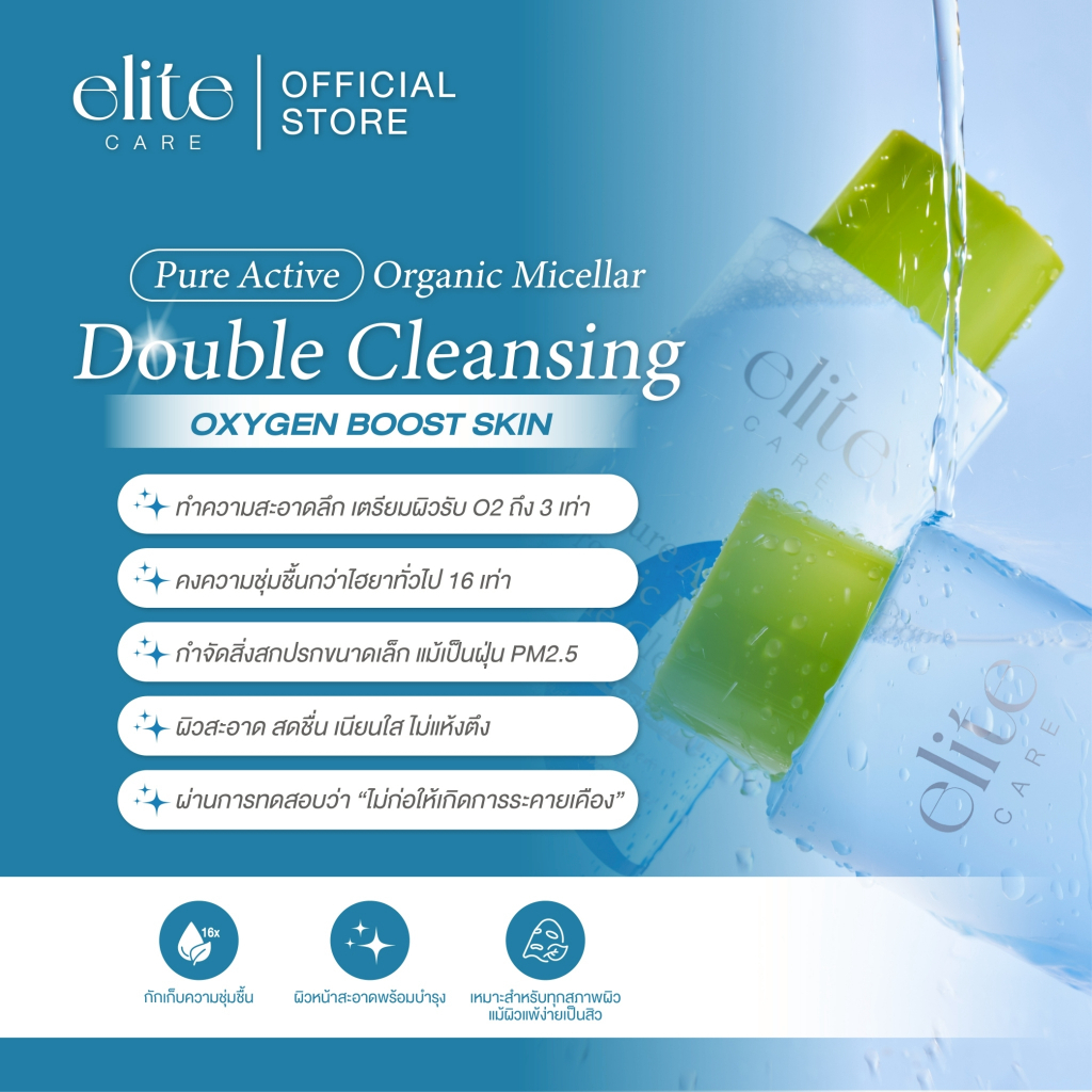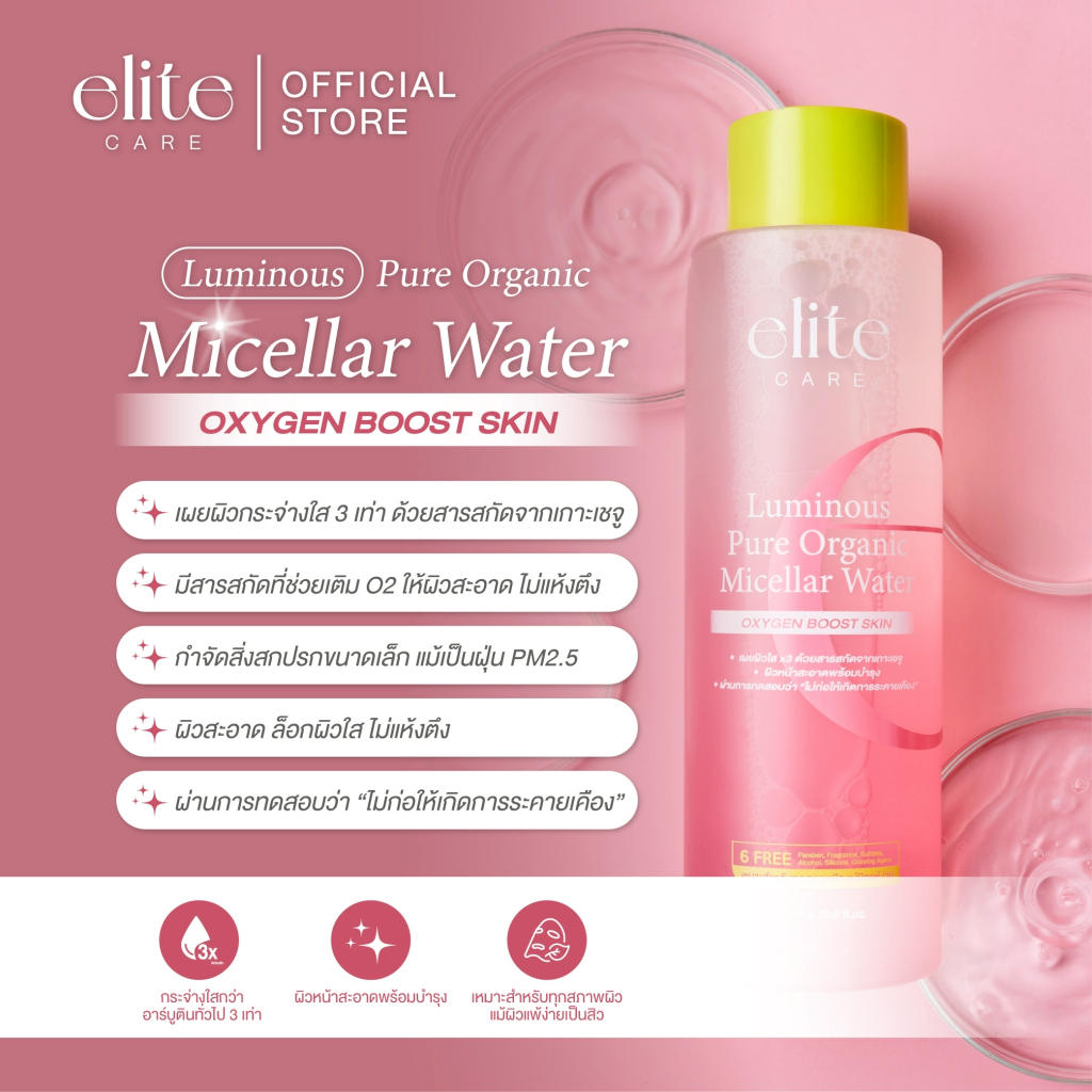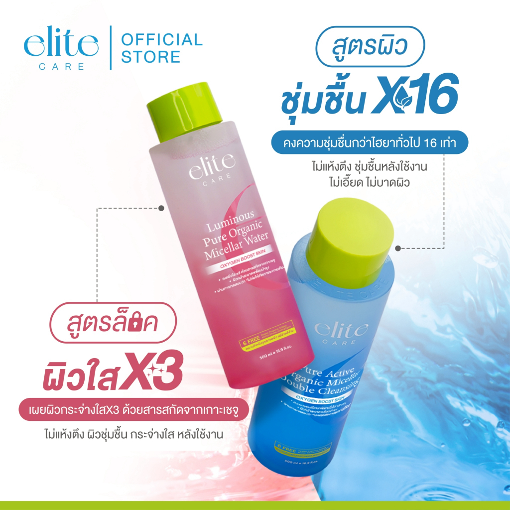 คลีนซิ่ง อีลิท แคร์ ดับเบิ้ล & ลูมินัส ไมเซลล่า 500ml Elite Care Pure Active Double & Luminous Micellar Cleansing