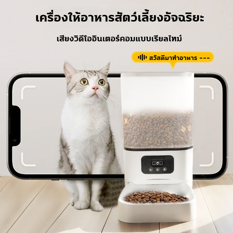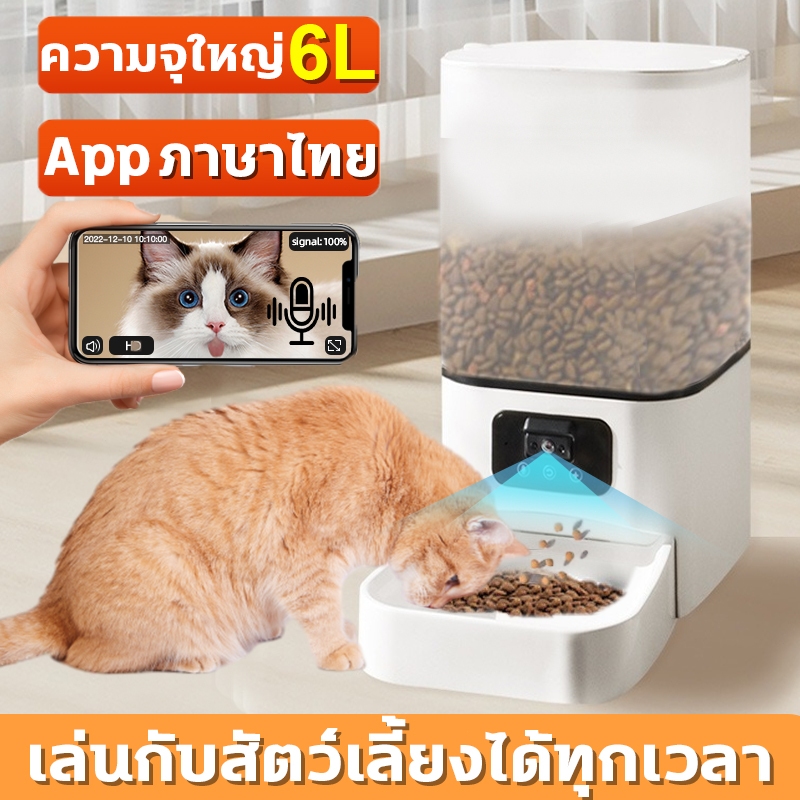 🐾6L เครื่องให้อาหารอัตโนมัติ🍲พร้อมกล้องวิดีโอ ชามข้าวแมว WiFi Camera ตั้งเวลาให้อาหาร Smart pet Feeder