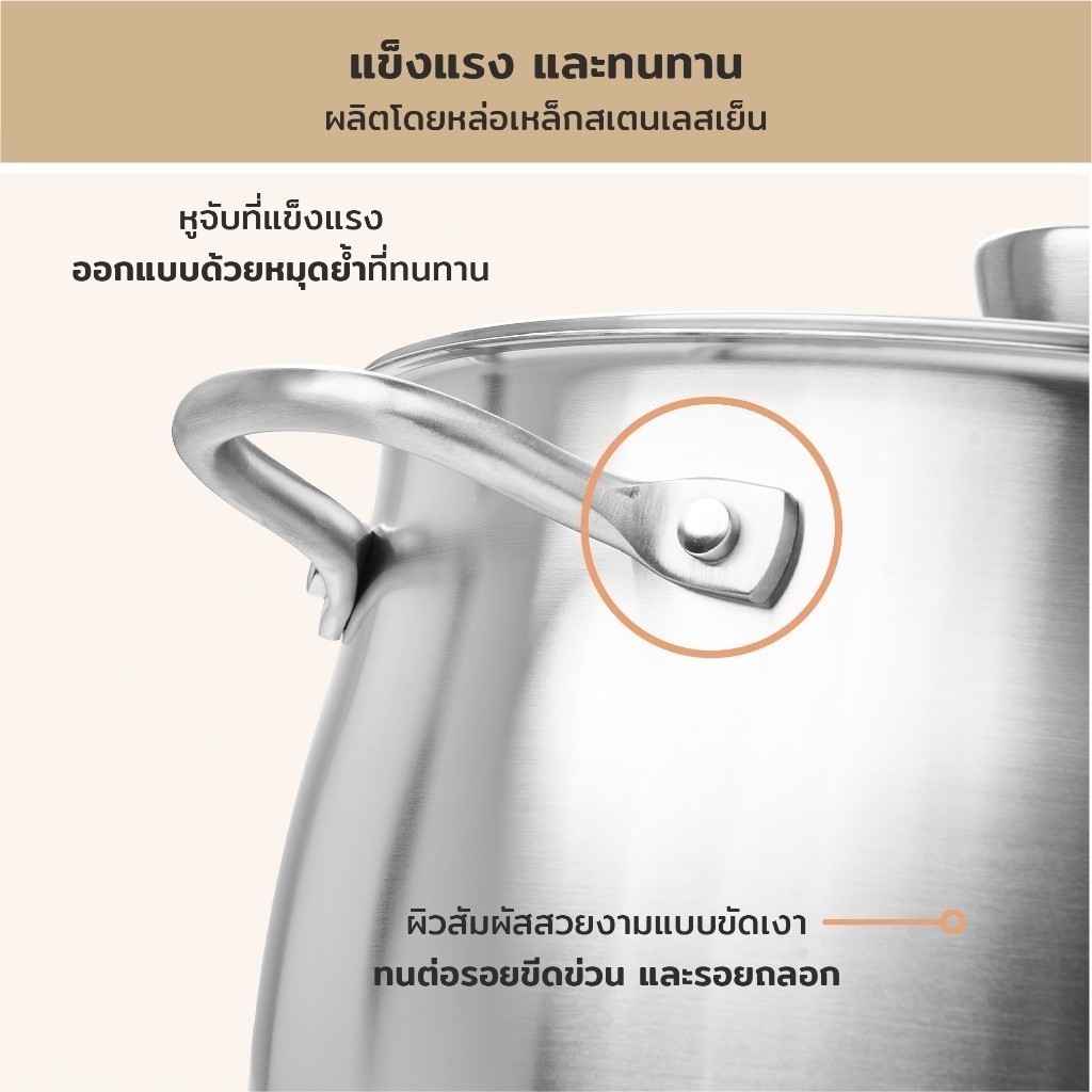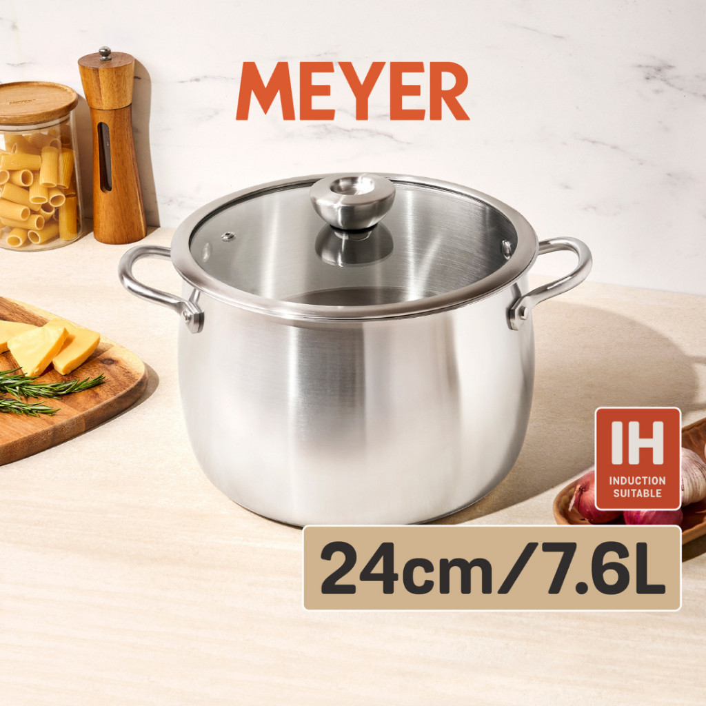 MEYER WHITE STEEL 24CM/8QT/7.6L COV STOCKPOT หม้อสเตนเลส สตีล สองหูขนาด 24 ซม./ 7.6 ลิตร (71504-T)
