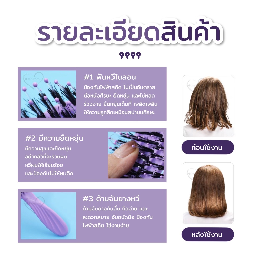 แปรงจัดแต่งทรงผมขนหมูป่าแท้ ช่วยลดอาการผมพันกัน พร้อมกับซีกหวีไนลอนนวดหนังศรีษะ แปรงจัดแต่งทรงผมป้องกันไฟฟ้าสถิตย์