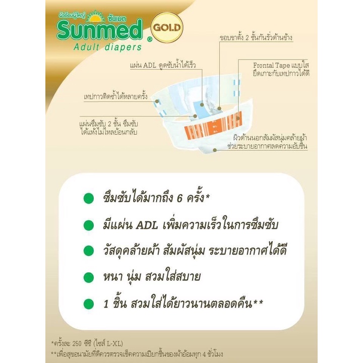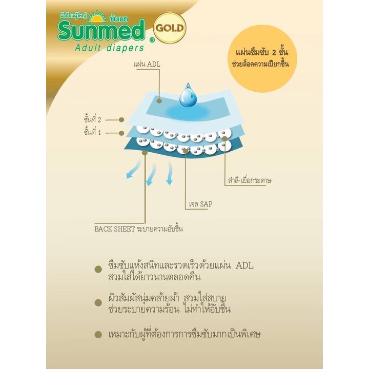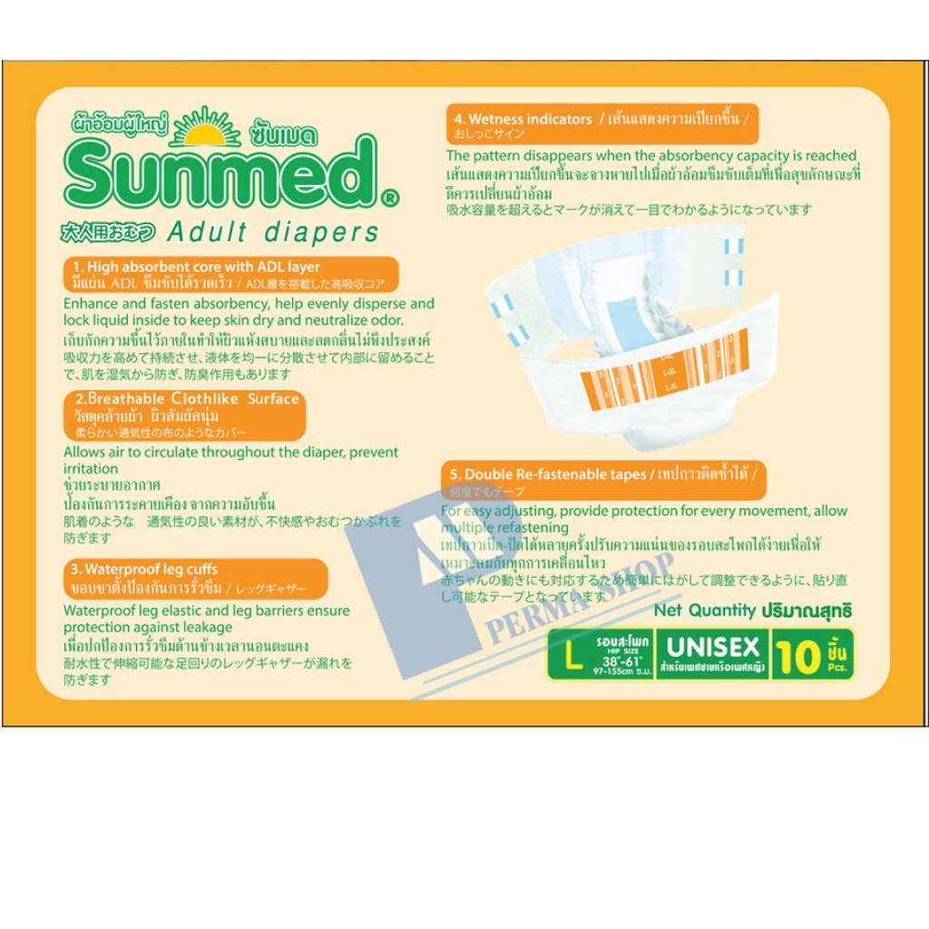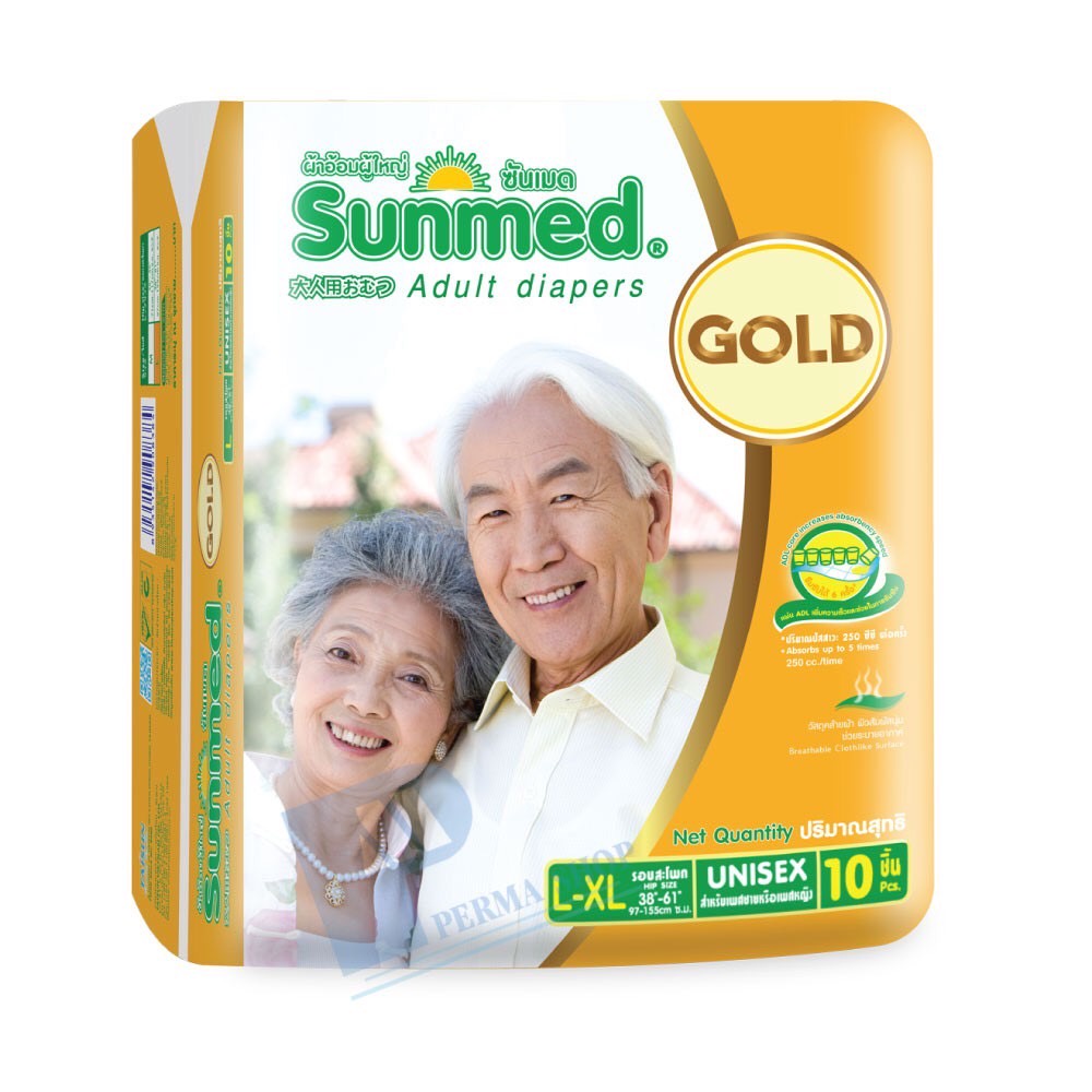 Sunmed Gold ผ้าอ้อมผู้ใหญ่ ซันเมด โกลด์ แบบเทป Size L-XL (จำนวน 1 ห่อ 10 ชิ้น)