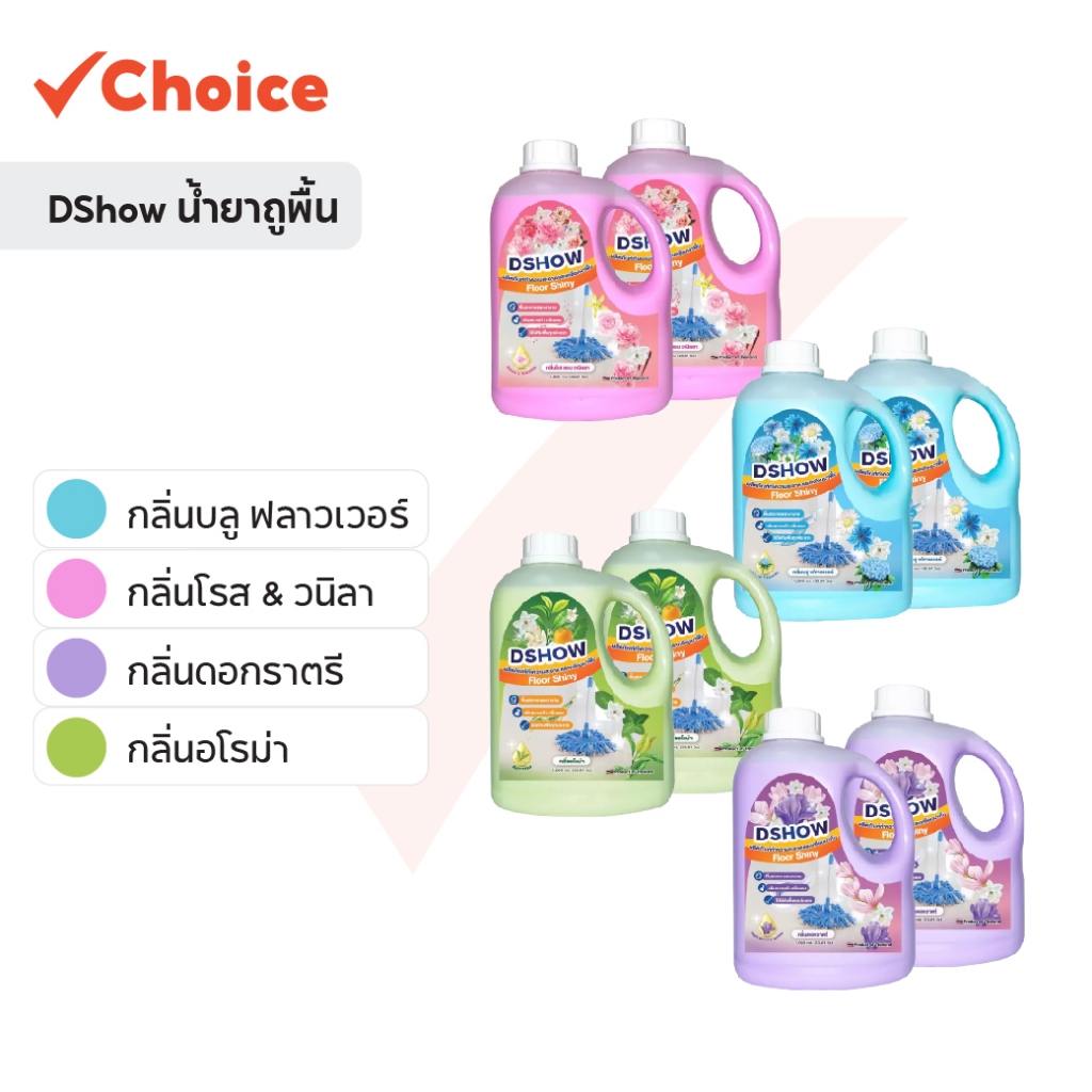 DShow น้ำยาถูพื้นเคลือบเงา (Floor Shiny) ขนาด 1000มล. x2 แพ็คคู่! หูหิ้วสะดวก เลือกกลิ่นหอมได้ 4 สี
