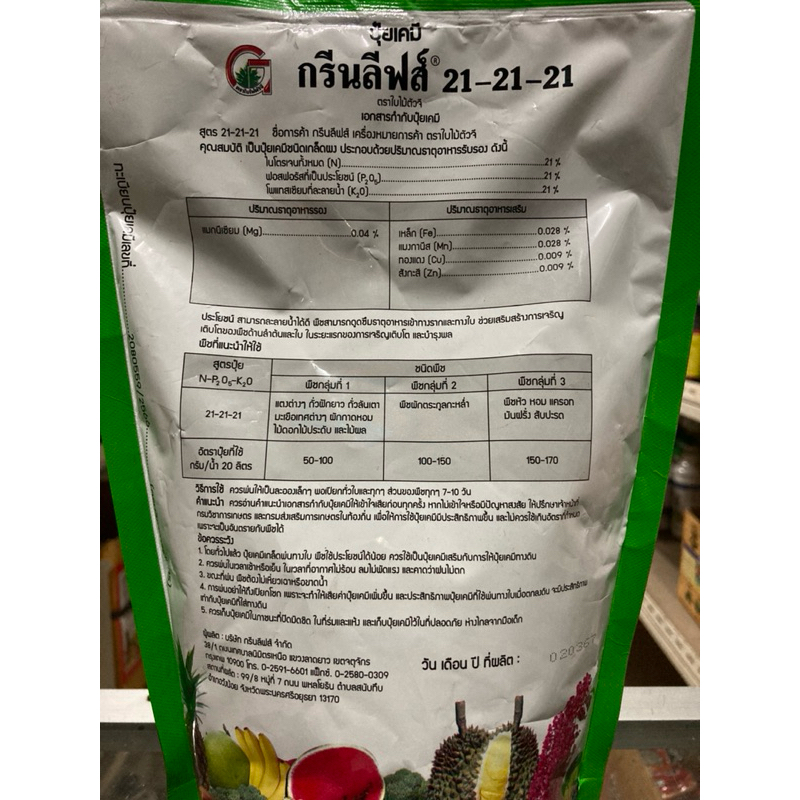 ปุ๋ยเกร็ด 21-21-21 กรีนลีฟ สูตรเสมอ ขนาด 1 กิโลกรัม