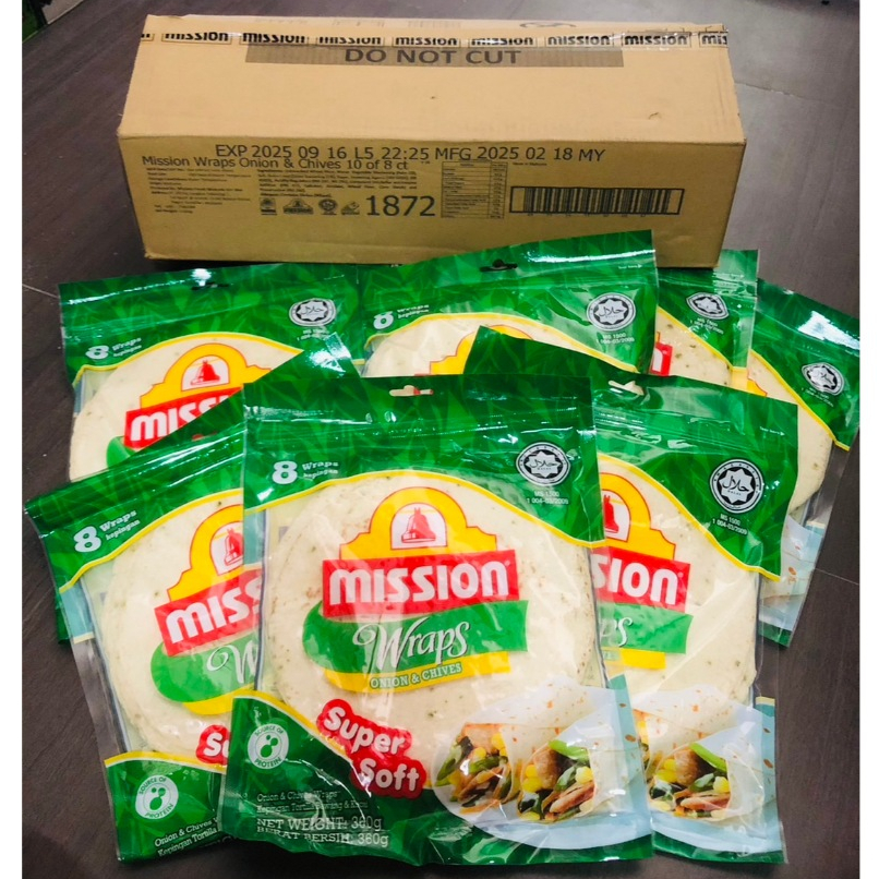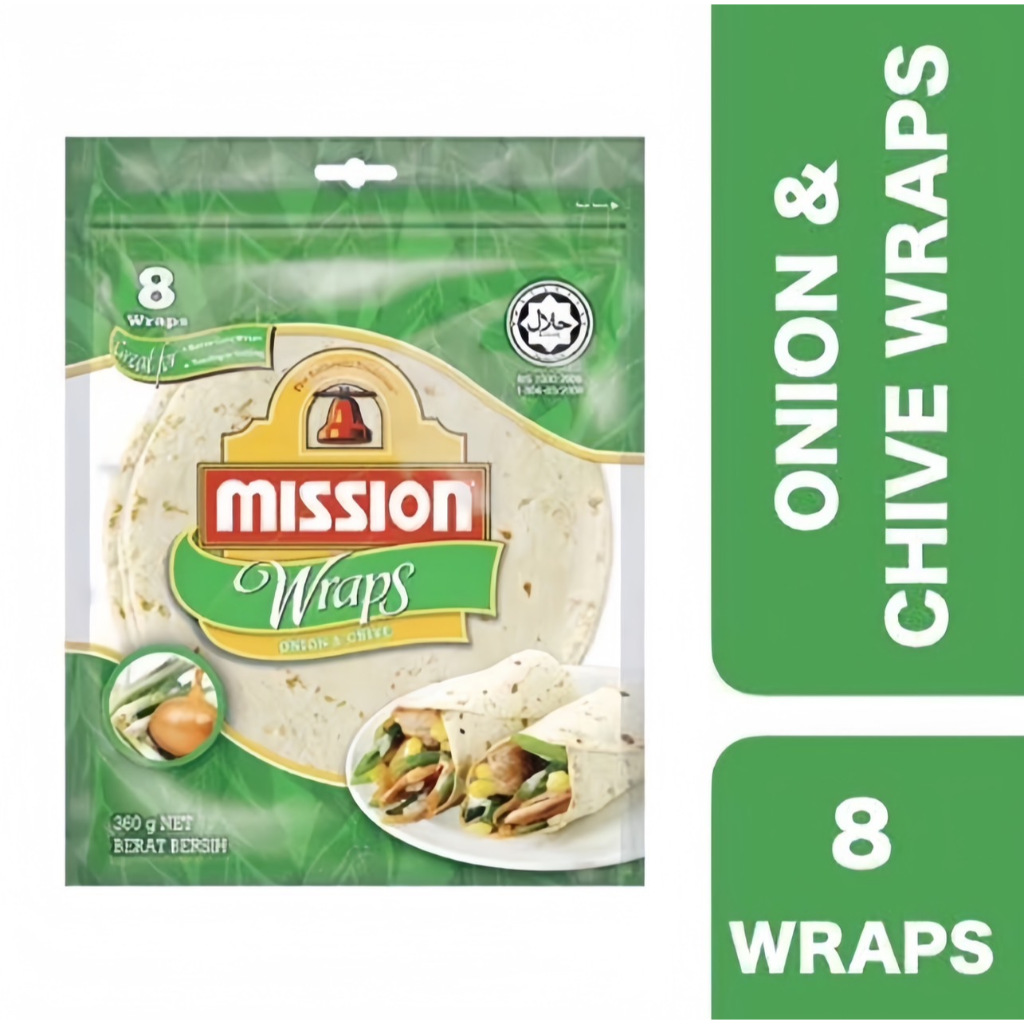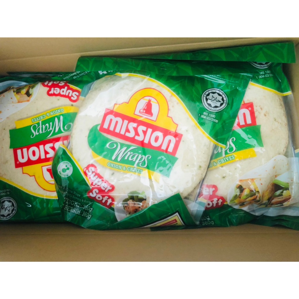 แผ่นตอติญ่า/เคบับรสหัวหอมmission wrap Onion&chive wraps มิสชั่นแร็ปรสหัวหอมพร้อมทาน1เเพ็คมี8เเผ่น
