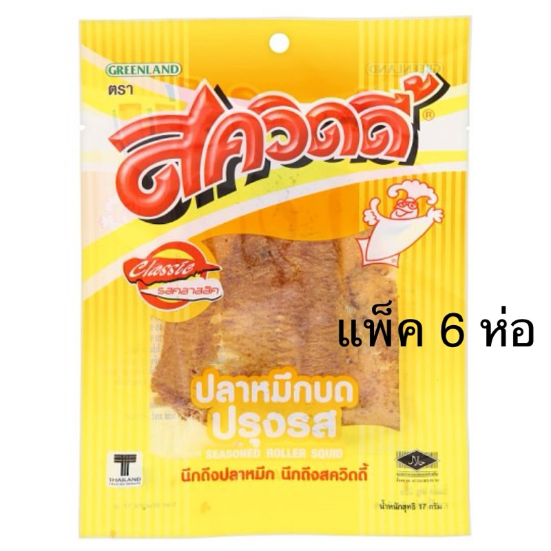 (แพ็ค6ห่อ) สควิดดี้ปลาหมึกบดเผ็ดสะเด็ด11g., ปรุงรส17g., ปลาหมึกเส้นรสเผ็ด10g, รสดั้งเดิม 19g. squidy squid snack grind