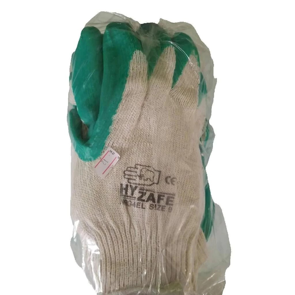 ถุงมือผ้าเคลือบยางพารา สีเขียว เบอร์ 9 (12คู่/แพค)