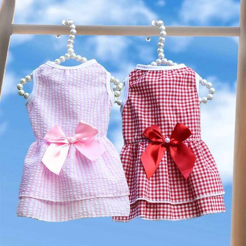 New เสื้อสัตว์เลี้ยง ประดับโบว์ ชุดเดรสกระโปรง ใส่สบาย ระบายอากาศดีน่ารัก ไซซ์ S/M/L