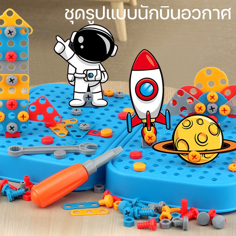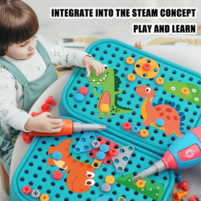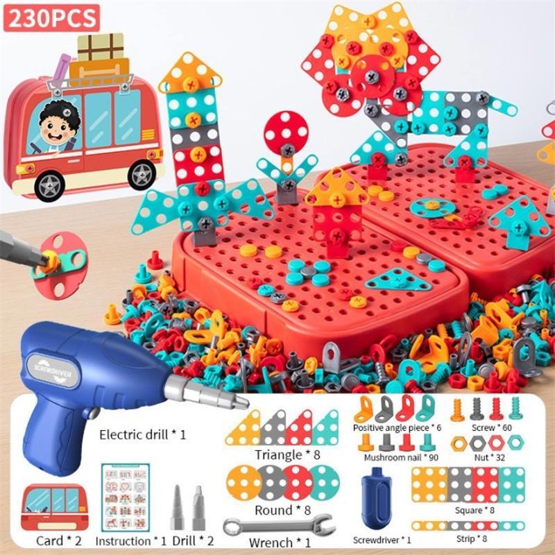 JoyToys ของเล่นเด็ ด้วยสว่านไฟฟ้า ชุดถอดประกอบคู่มือสำหรับเด็ก ของเล่นบล็อคประกอบสกรู ของเล่น DIY ของเล่นเครื่องมือช่าง