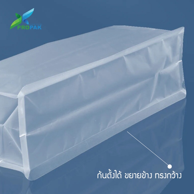 ถุงซิปขุ่น ก้นตั้งได้ ขยายข้าง ทรงกว้าง มีหูหิ้ว