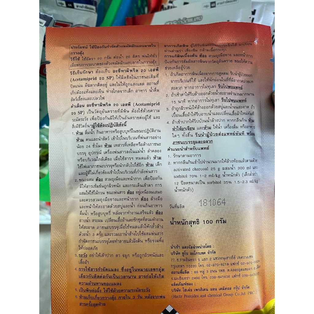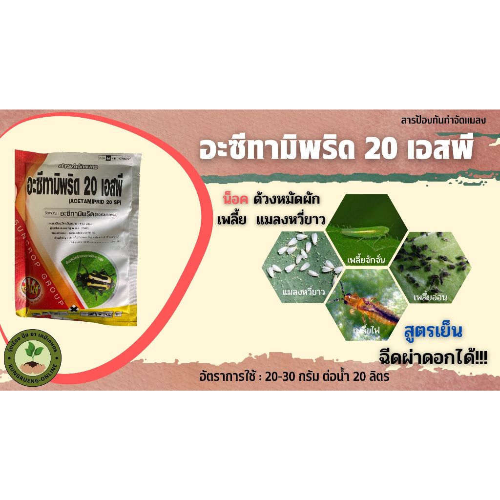 อะซีทามิพริด 20 เอสพี ซันคร็อพ กำจัดหมัด เพลี้ยไฟ เพลี้ยงแป้ง ด้วงหมัดผัก ฆ่าเพลี้ย ฆ่าแมลง