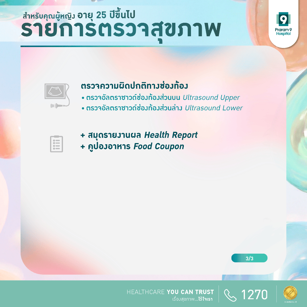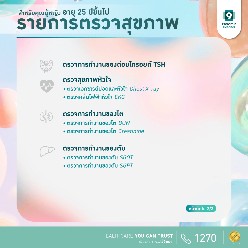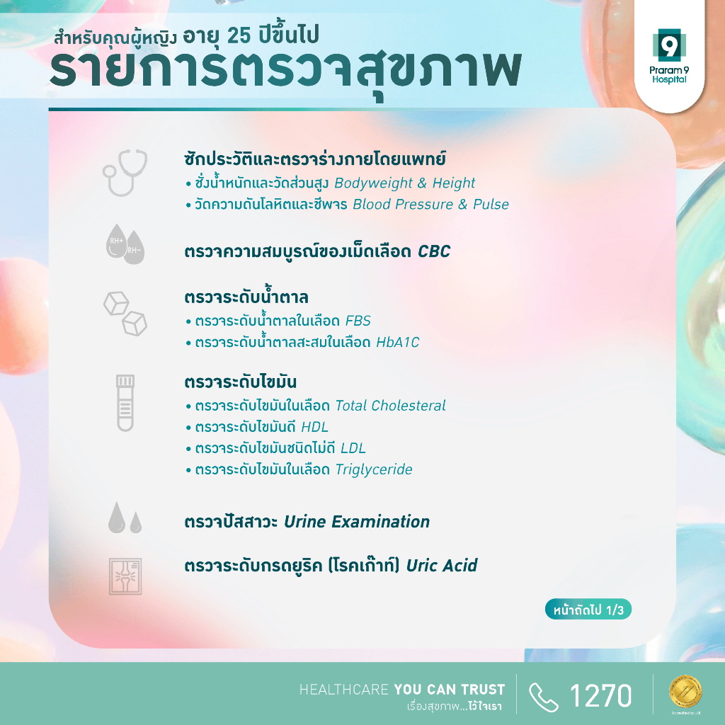 [E-coupon] รพ.พระรามเก้า แพ็กเกจตรวจสุขภาพเหมาะสำหรับคุณผู้หญิงอายุ 25 ปีขึ้นไป Praram9Hospital