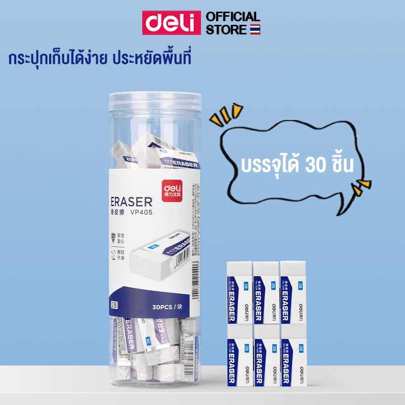 ยางลบดินสอ Deli 2B/4B ก้อนสี่เหลี่ยม ลบสะอาด ไม่ทิ้งคราบ รอยดำ เหมาะใช้สอบ (1 ชิ้น) Eraser