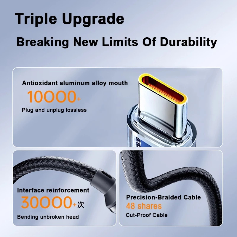 รับประกัน 1 ปี สายชาจแบตเร็ว 120W/6A สายชาร์จUSB Type C รองรับLED สายยาว1เมตร2เมตร