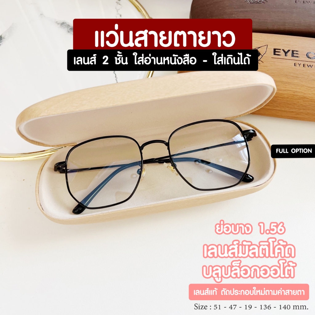 แว่นสายตายาว เลนส์ 2 ชั้น ใส่อ่านหนังสือ-เดิน ออกแดดเปลี่ยนสี รุ่น KT247523 ตัดใหม่ ย่อบาง 1.56