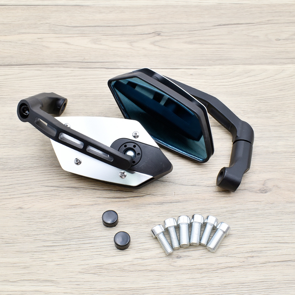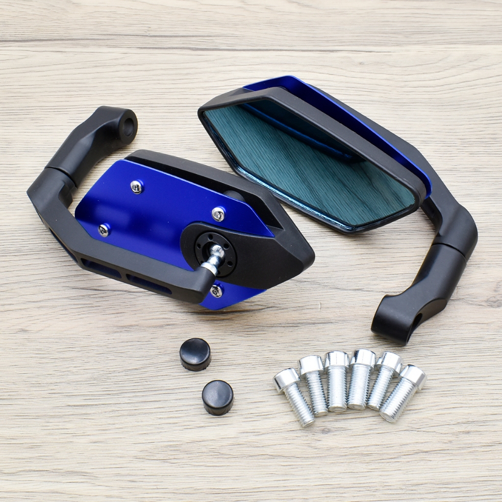 กระจกเเต่ง เลน์สีฟ้า 1คู่ ขาBSC หลังอลูมีเนียม ใส่กับทุกรุ่นได้ wave click mio fino pcx ใส่เเล้วสุดเเท่ เเถมน๊อต6ตัว