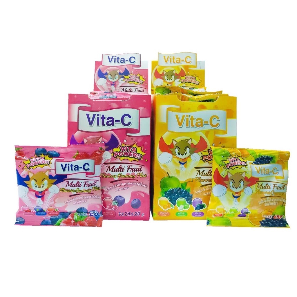 ^Vitamin C Vita-C Multi Fruit Gummy เยลลี่ผลไม้ ผสมวิตามินซี สำหรับเด็ก ยกกล่อง 24 ซอง