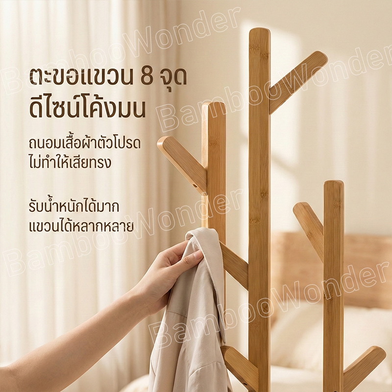 ที่แขวนกระเป๋า ที่แขวนหมวก ราวแขวนกระเป๋า ไม้ไผ่ แขวนหมวก ราวผ้าตั้งพื้น ราวแขวนเสื้อผ้าอเนกประสงค์ ชั้นวาง+ราวไม้