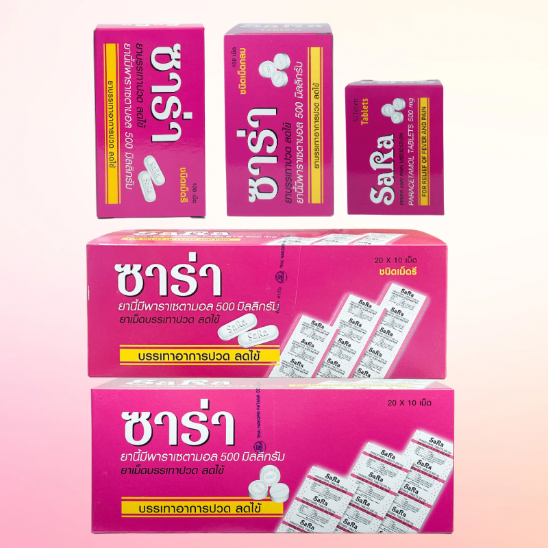 ซาร่า sara paracetamol 500mg พาราเซตามอล ยาสามัญประจำบ้าน (มีหลายขนาด)
