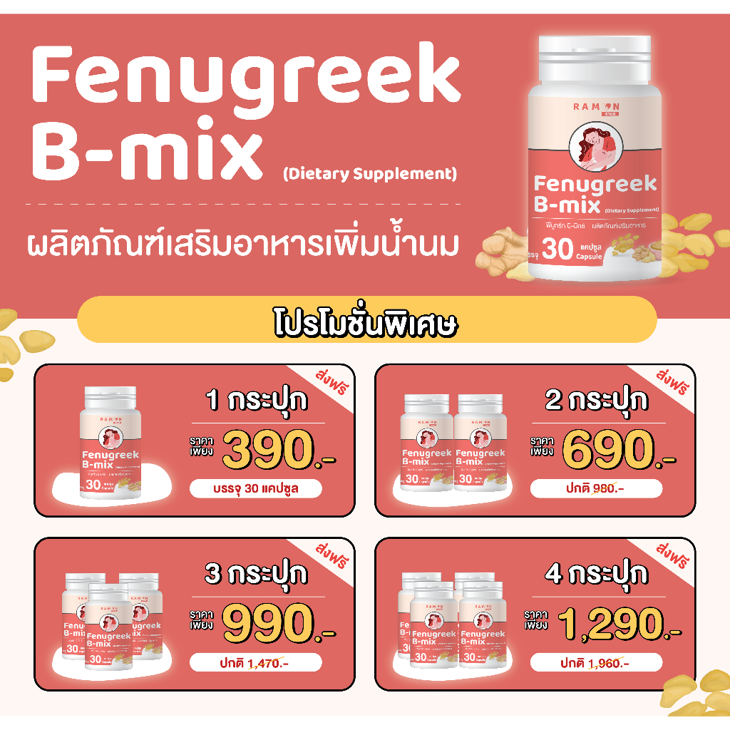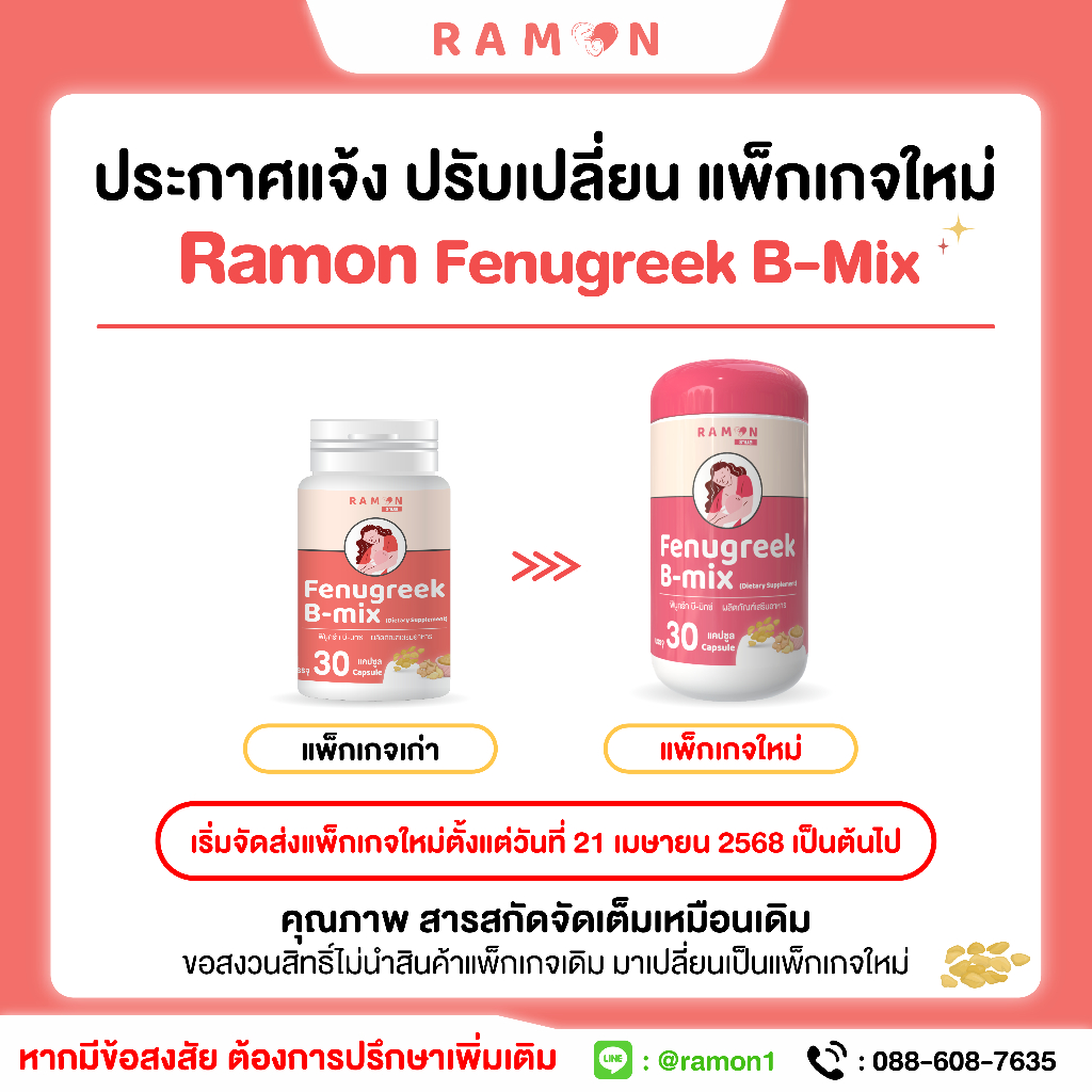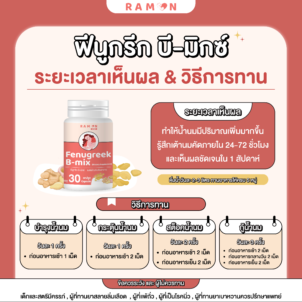Ramon | Fenugreek B-mix | ผลิตภัณฑ์เสริมน้ำนม | เหมาะสำหรับคุณแม่ที่น้ำนมน้อย | 1 กระปุก 30 เม็ด | ของแท้ 100%