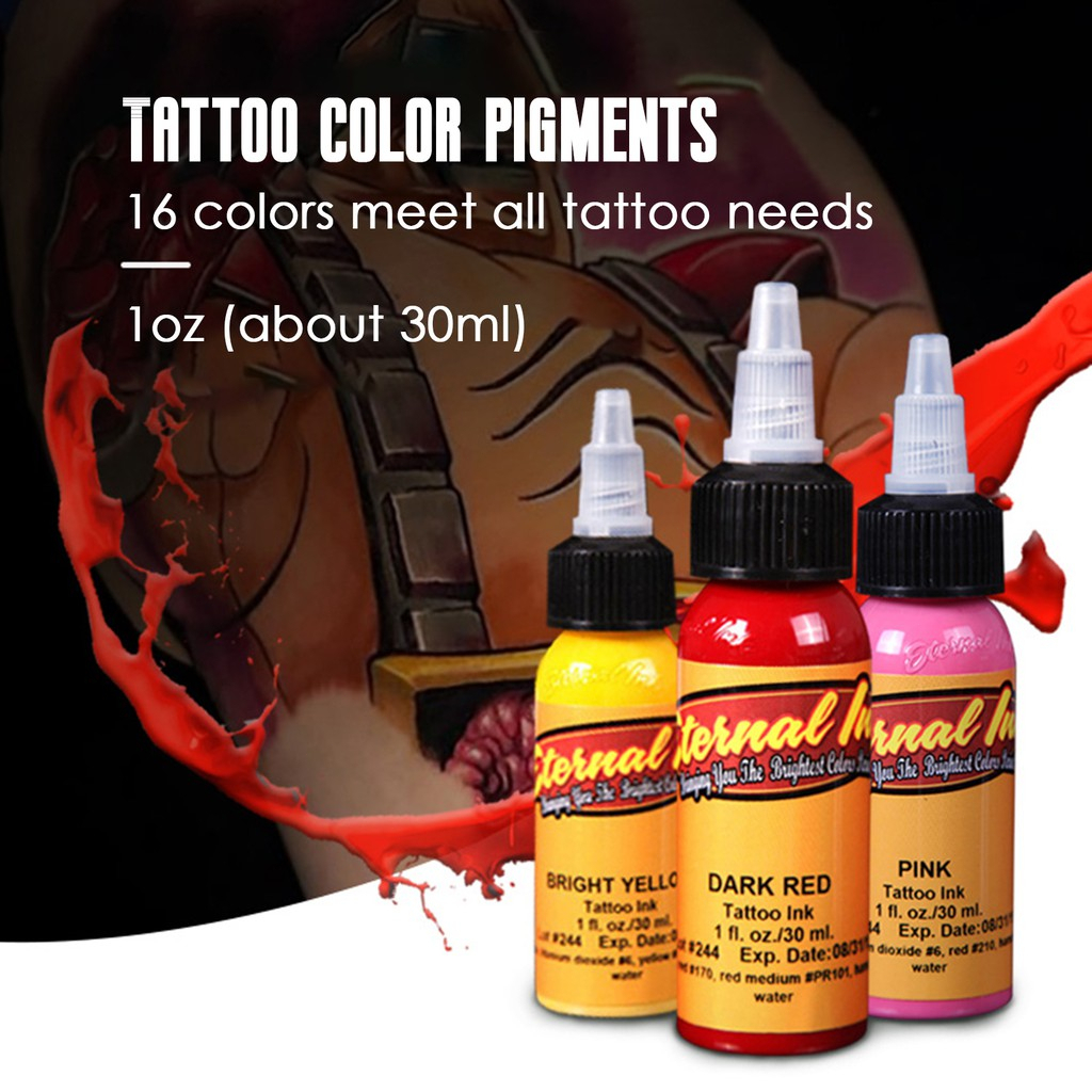 16สี หมึกสัก 30มล/ขวด สีสักสีสักลายของแท้ น้ําหมึกสักลาย หมึกสักลายแท้
