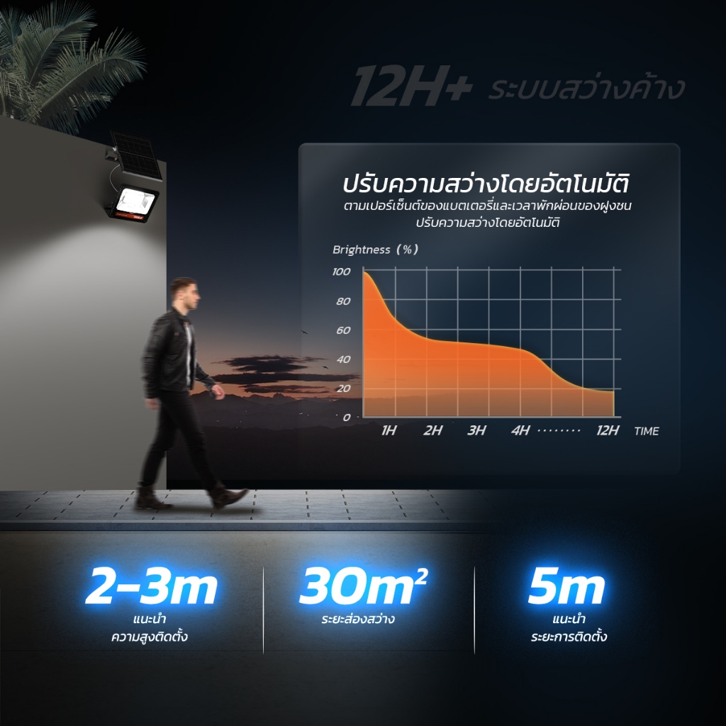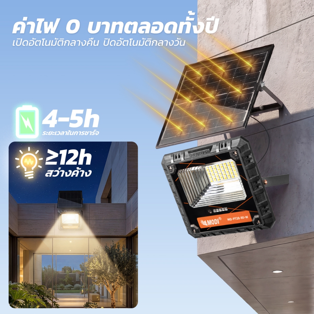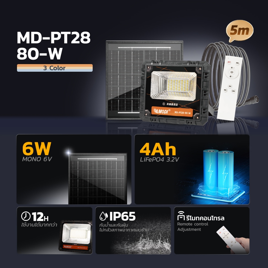 MODI ไฟสปอตไลท์โซล่าเซลล์ 80W เปิดได้ 3 แสง IP65 ไฟพลังงานแสงอาทิตย์ ส่องป้ายโฆษณา รีโมทคอนโทรล