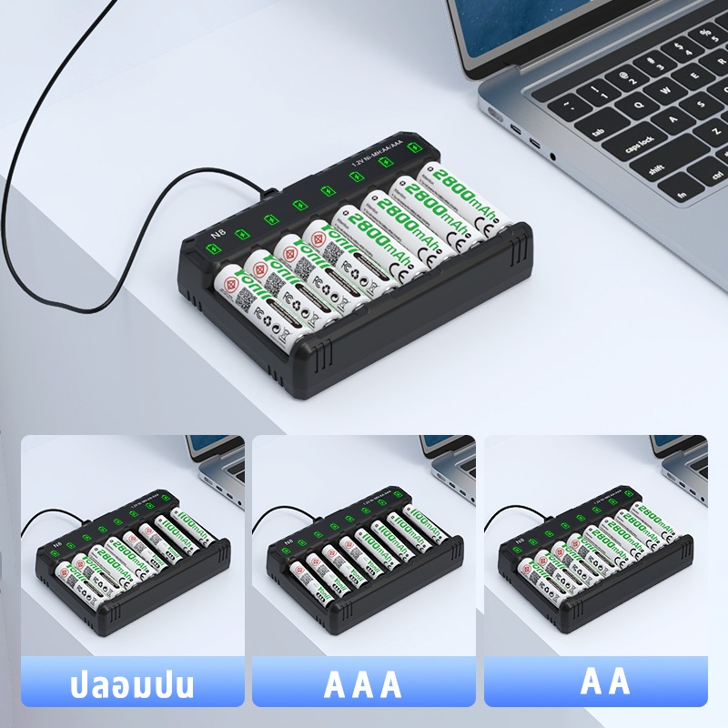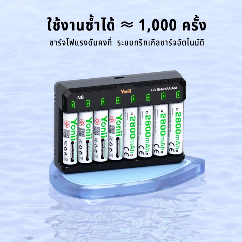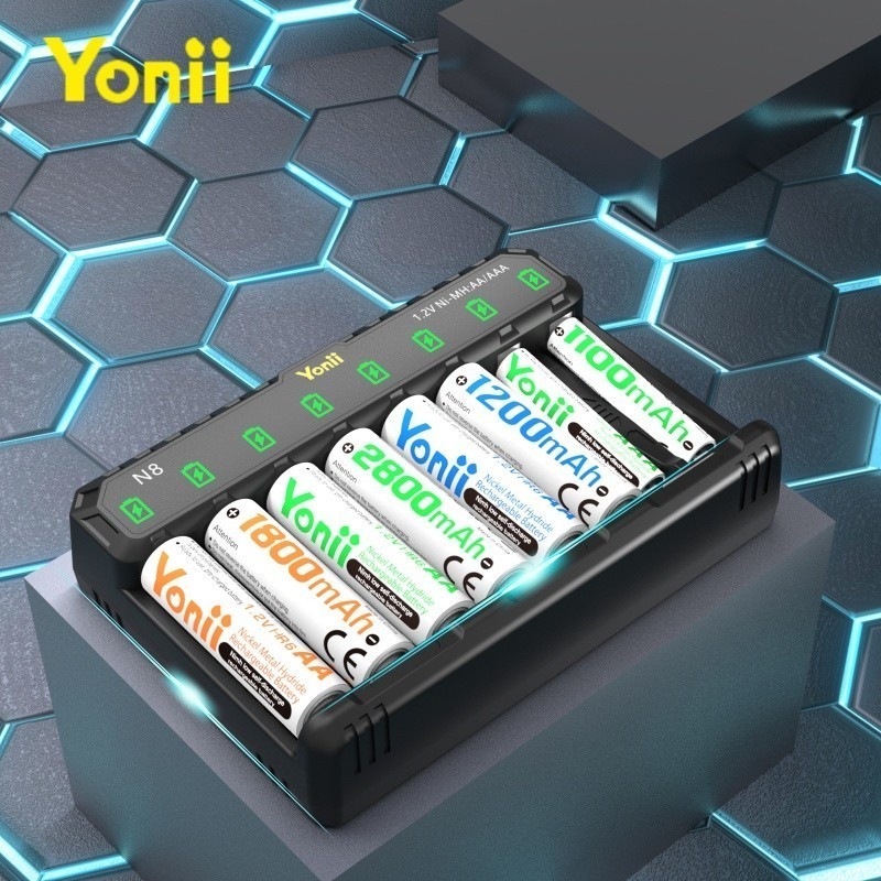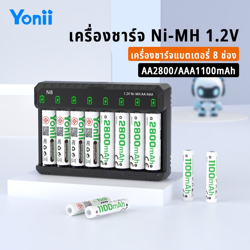 Yonii N8 Battery Charger Led 1.2V Ni-Mh Ni-CD AA-LR 6 / AAA - LR 03 สามารถชาร์จแบตเตอรี่ได้ 8 ช่องพร้อมกันอินเตอร์เฟสแบบ
