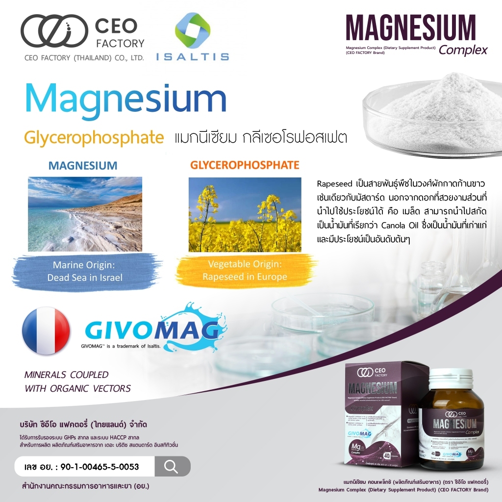 CEO แมกนีเซียม คอมเพล็กซ์ Magnesium Complex (ผลิตภัณฑ์เสริมอาหาร) (ตรา ซีอีโอ แฟคตอรี่)