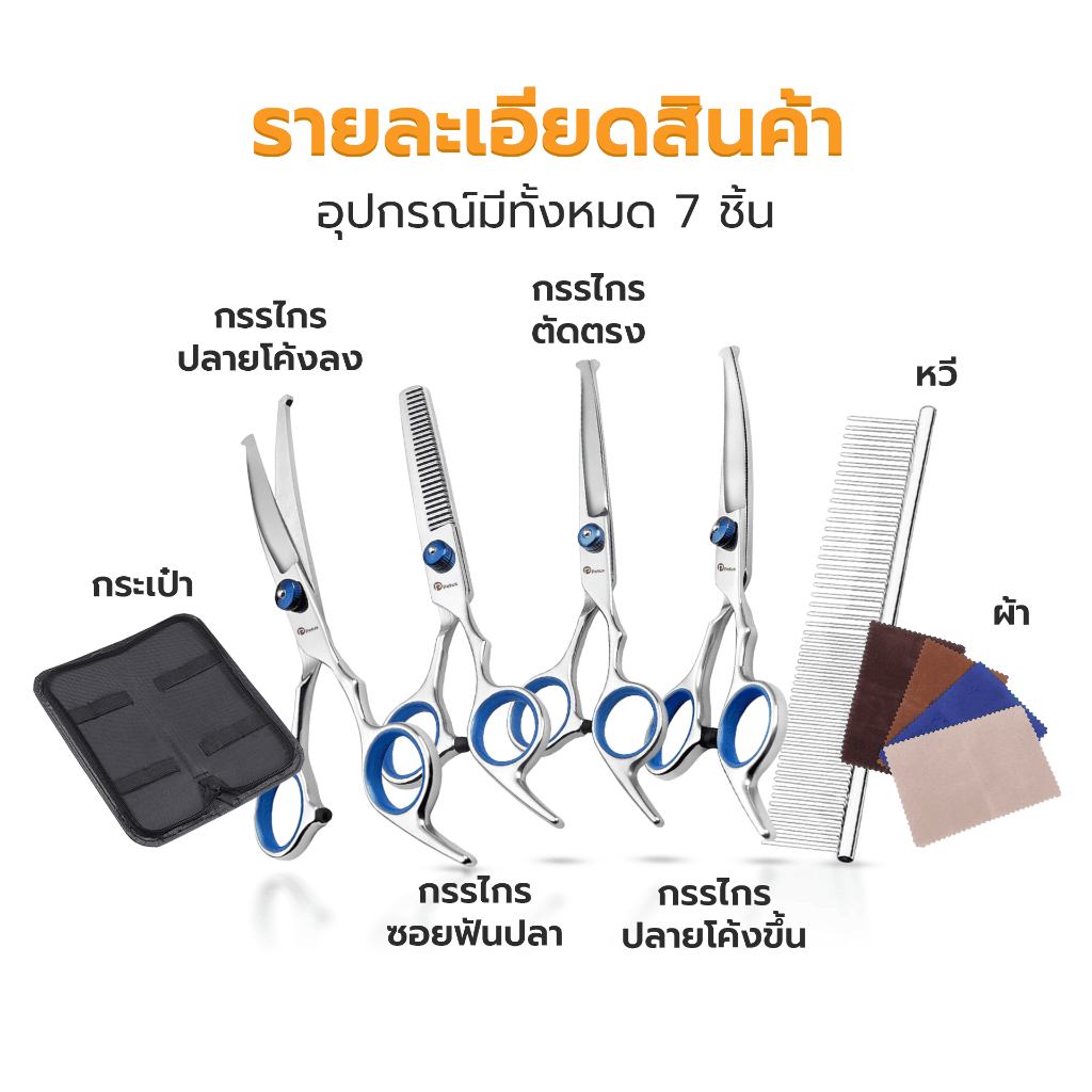 Petus กรรไกร กรรไกรตัดขนสัตว์เลี้ยง อุปกรณ์ดูแลขน เหมาะสำหรับสุนัข แมว กระต่าย มีแบบ โค้ง ตรง ซอย