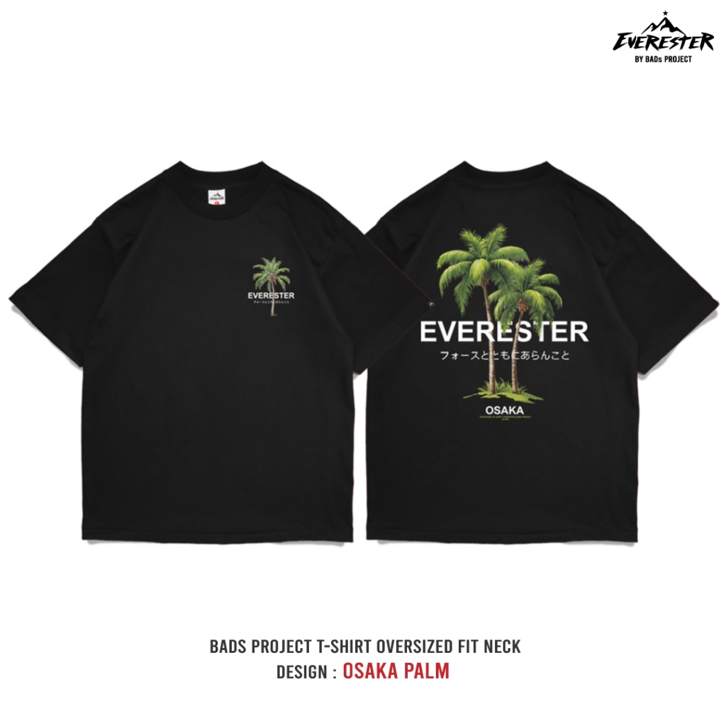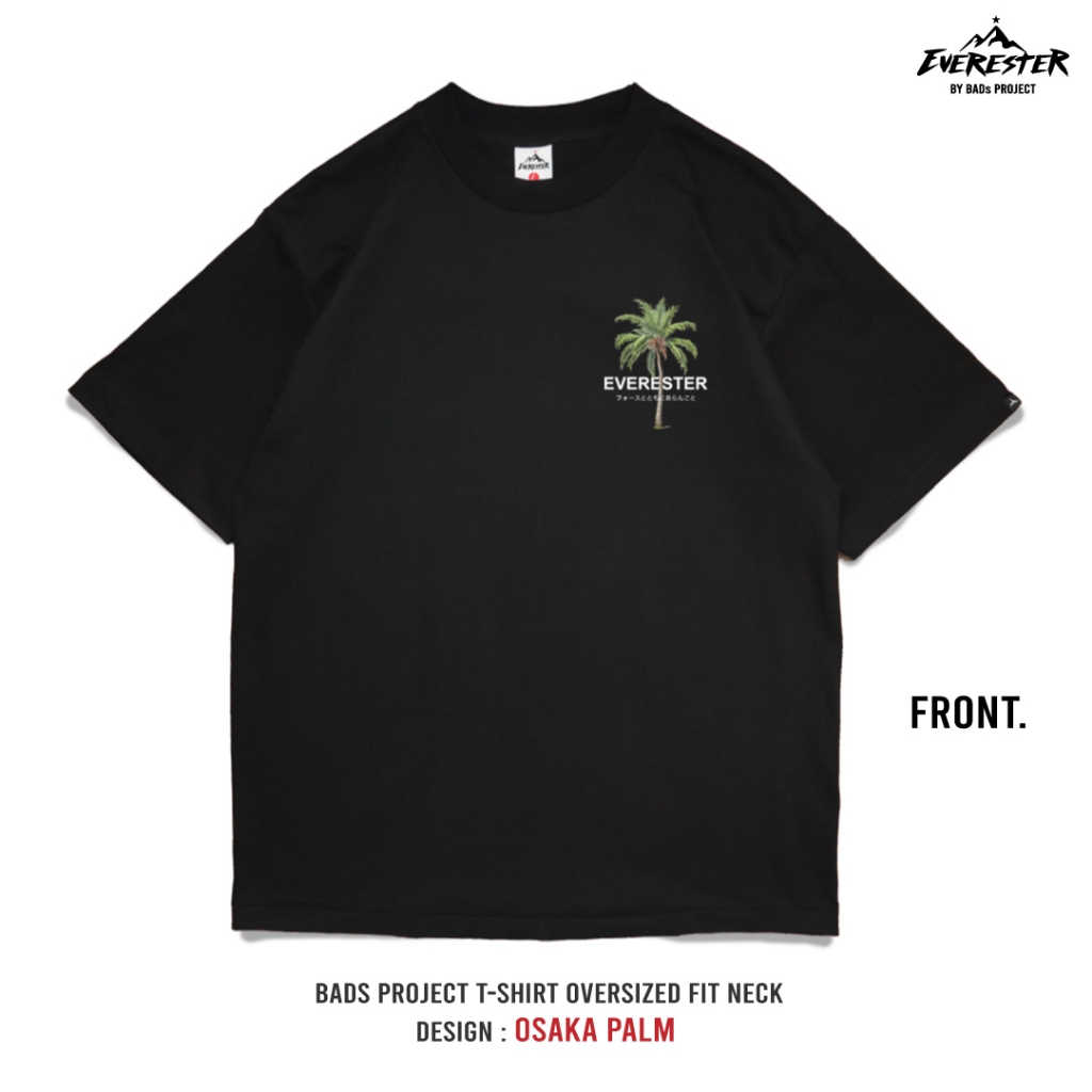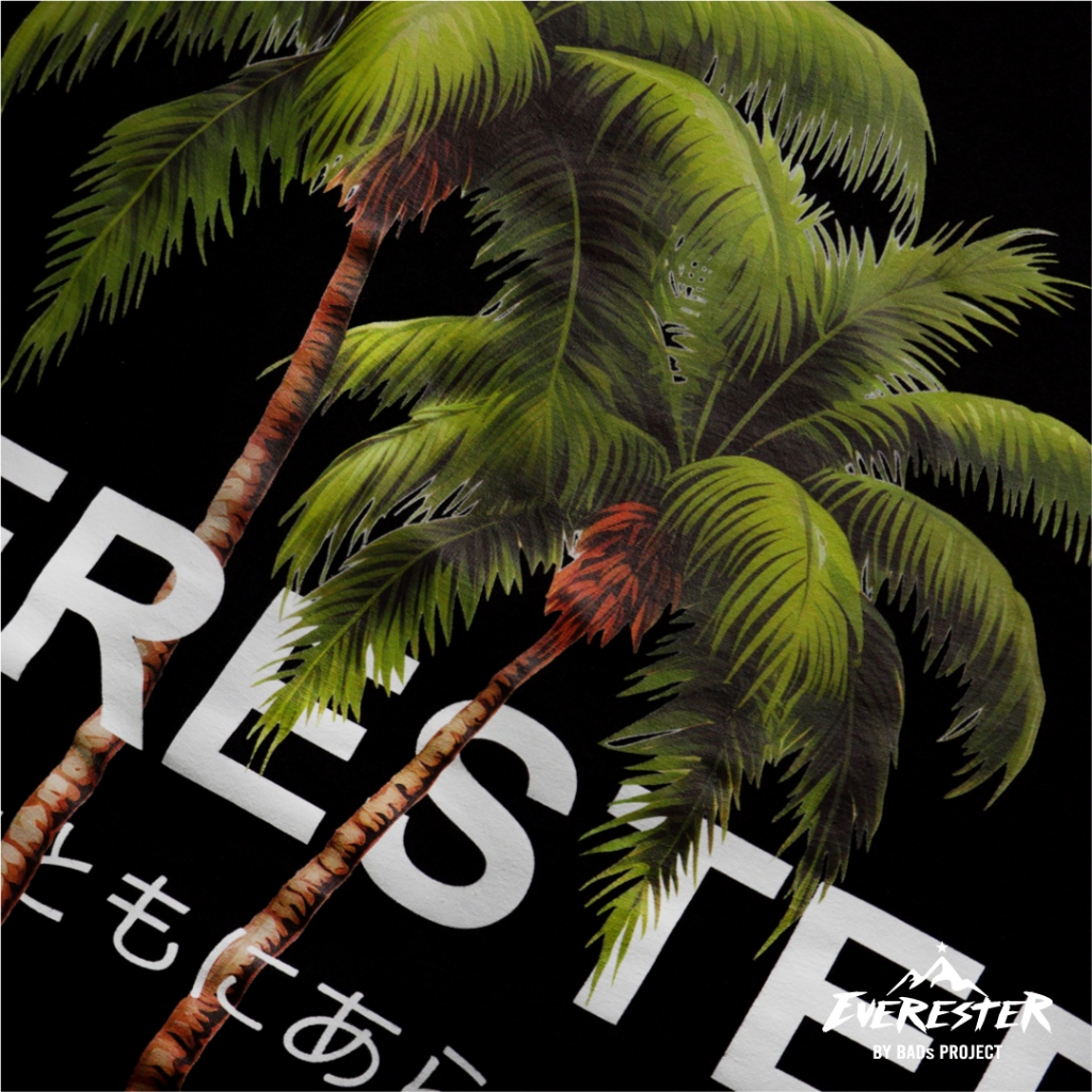 EVERESTER เสื้อคอฟิต อก 44"- 52" Heavy Cotton 100 % / เสื้อยืดผู้ชาย Oversized รุ่น Osaka Plam Black / EXP