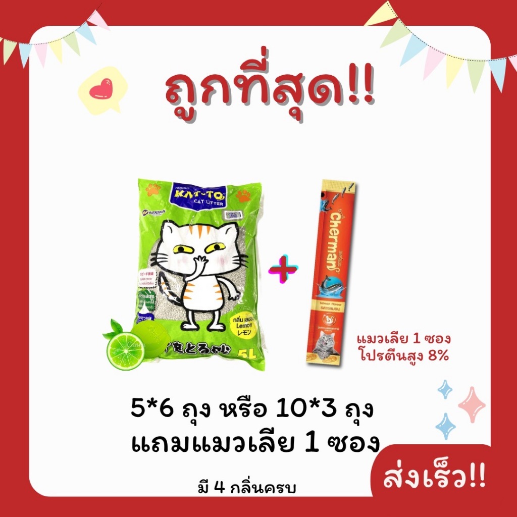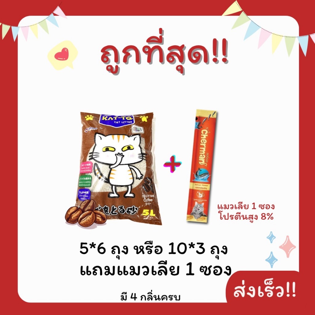 (โค้ดส่งฟรี0บาท)ทรายแมว Katto 5ลิตรและ10ลิตร รวม 30 ลิตร แถมแมวเลีย 1 ซอง ราคาถูกที่สุด ส่งฟรีไม่คิดเพิ่ม️