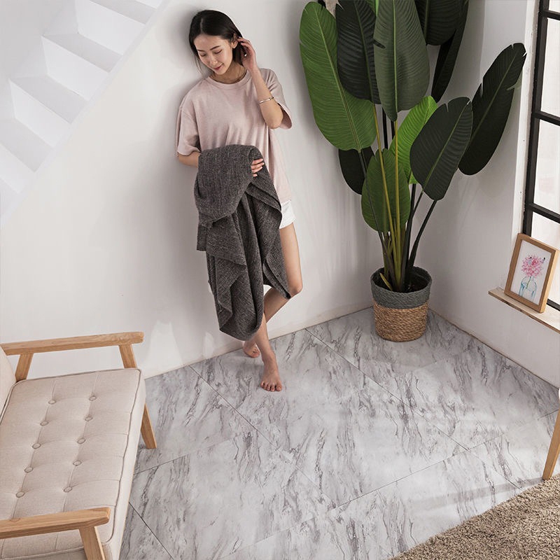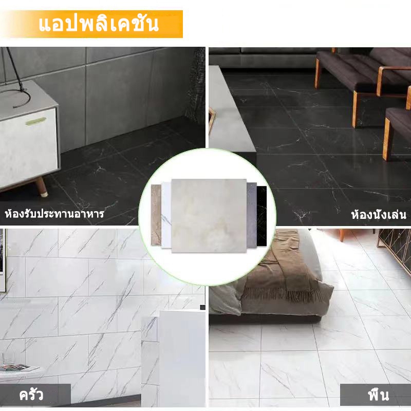 【ของขวัญฟรี】สติกเกอร์พื้นไวนิลลายหินอ่อนขนาด 60X60 ซม. พร้อมกาวในตัว PVC กันน้ำสำหรับปูพื้นและตกแต่งบ้าน