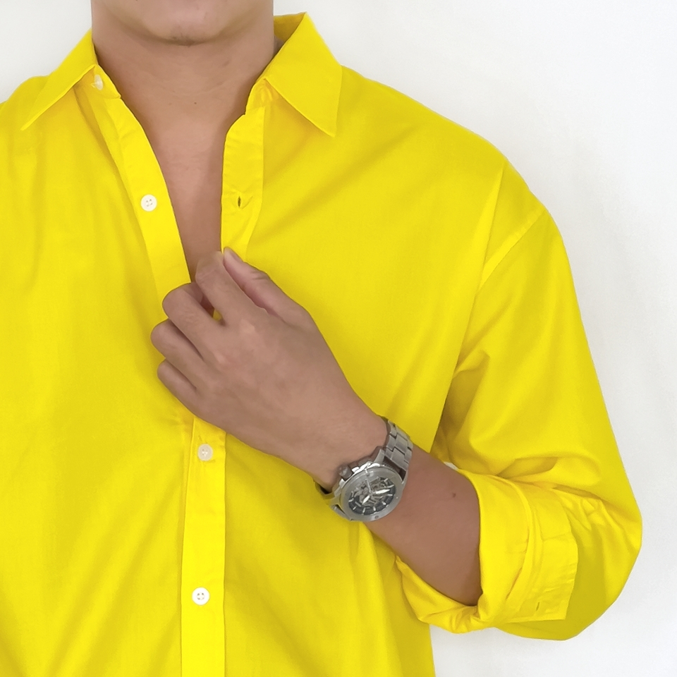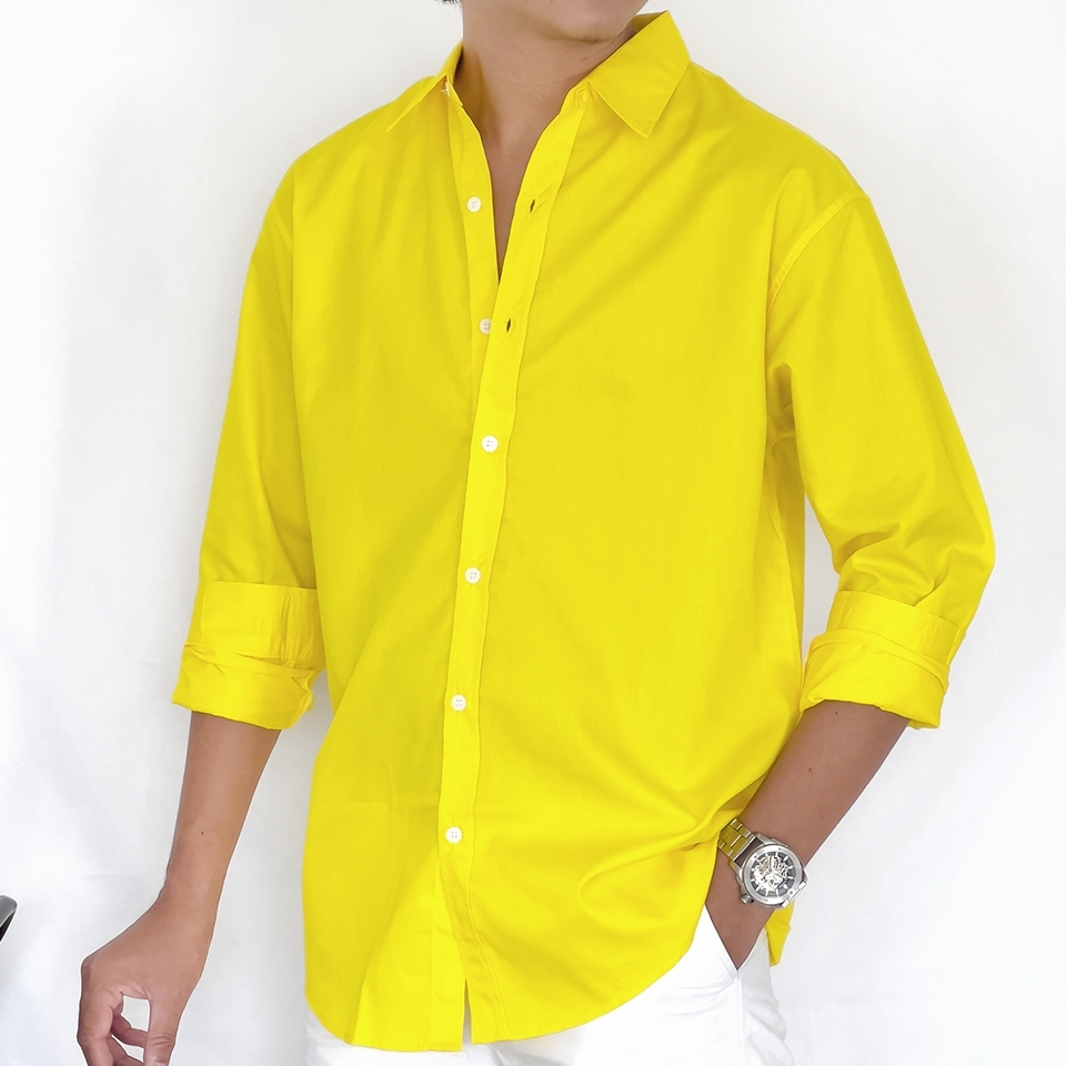 Fomo-เชิ้ตแขนยาว สีเหลืองเลม่อน เชิ้ตสีสด เสื้อเชิ้ตสีเหลือง เสื้อเชิ้ตคัลเลอร์ฟูล