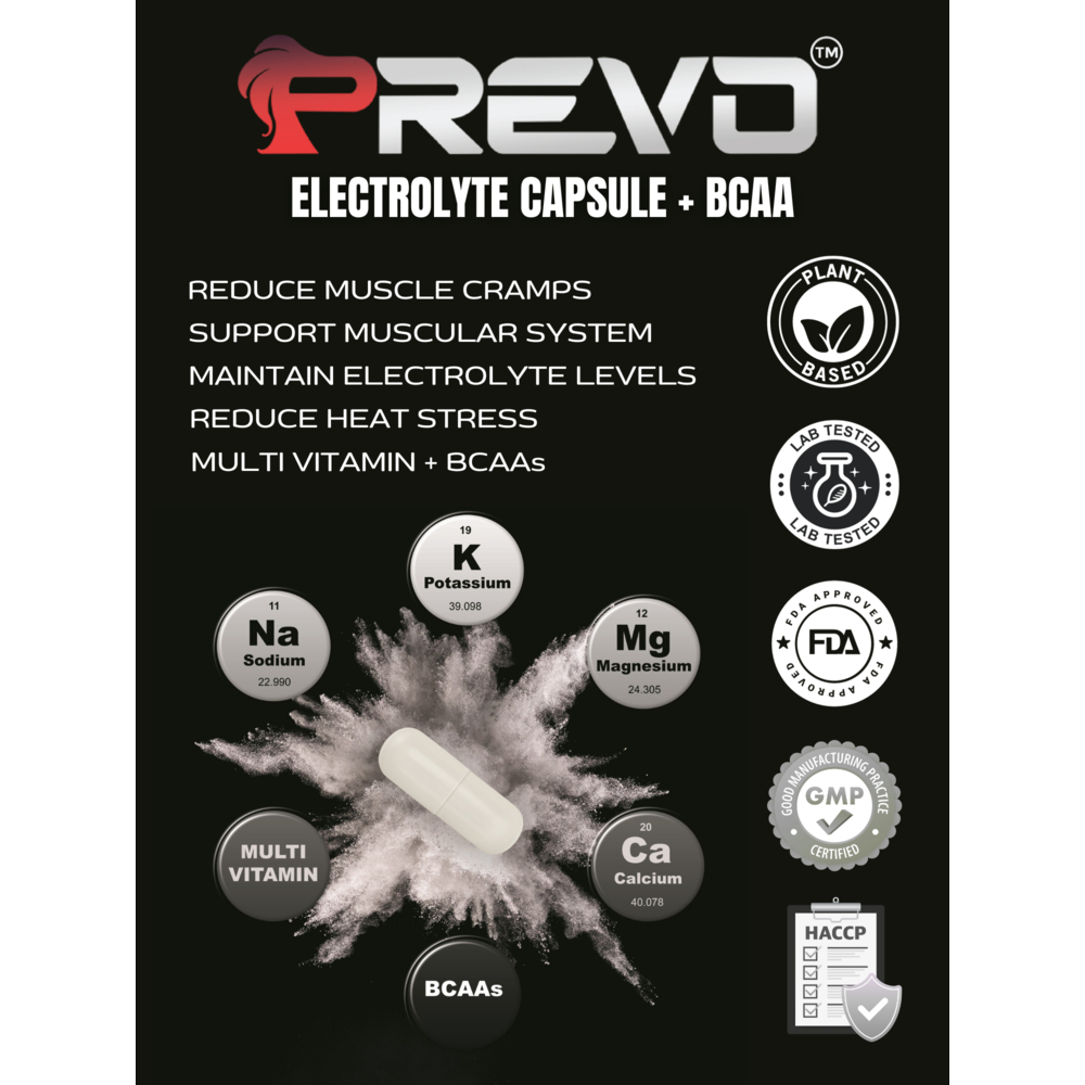 Prevo Caps : พรีโว แคปส์ [ 1 ซอง : 4 เม็ด ] ป้องกันตะคริว อาการล้า บาดเจ็บกล้ามเนื้อ อิเลคโทรไลต์ เกลือแร่แคปซูล