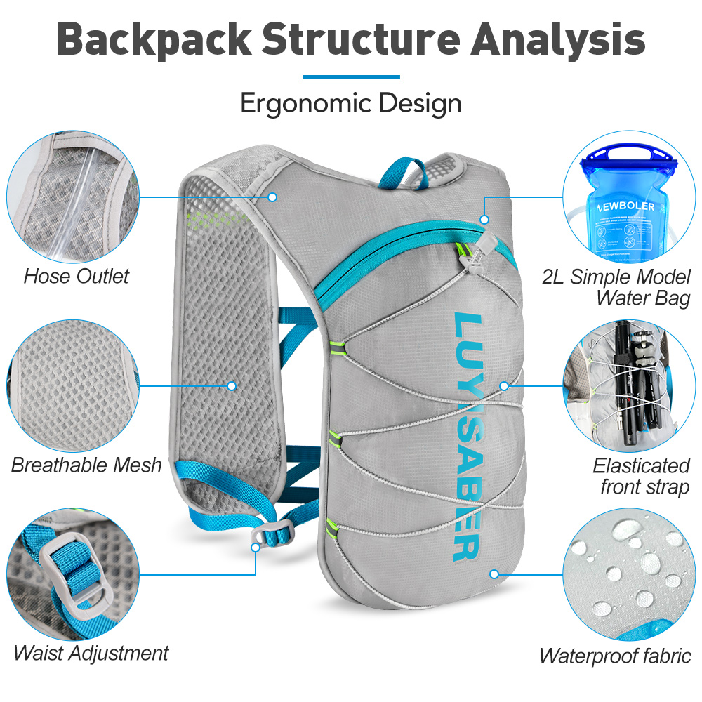 Newboler น้ําหนักเบา Breathable Outdoor Hydration Vest 2L กระเพาะปัสสาวะน้ําจ๊อกกิ้งเดินป่า