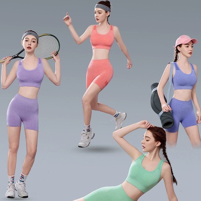 (มาใหม่ค่ะ) ชุดออกกำลังกายผู้หญิง สปอร์ตบรา ผ้ายืด เสื้อ+กางเกง สปอร์ตบราออกกำลังกาย MG binbinzhao