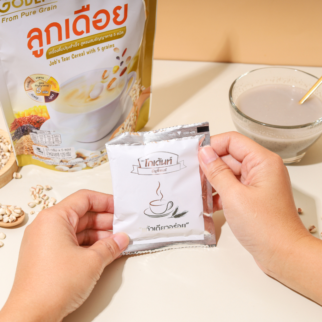 โกเด้นท์ เครื่องดื่มลูกเดือยปรุงสำเร็จ สูตรผสมธัญญาหาร 5 ชนิด (ขนาด 125 กรัม) จำนวน 5 ซอง/ถุง