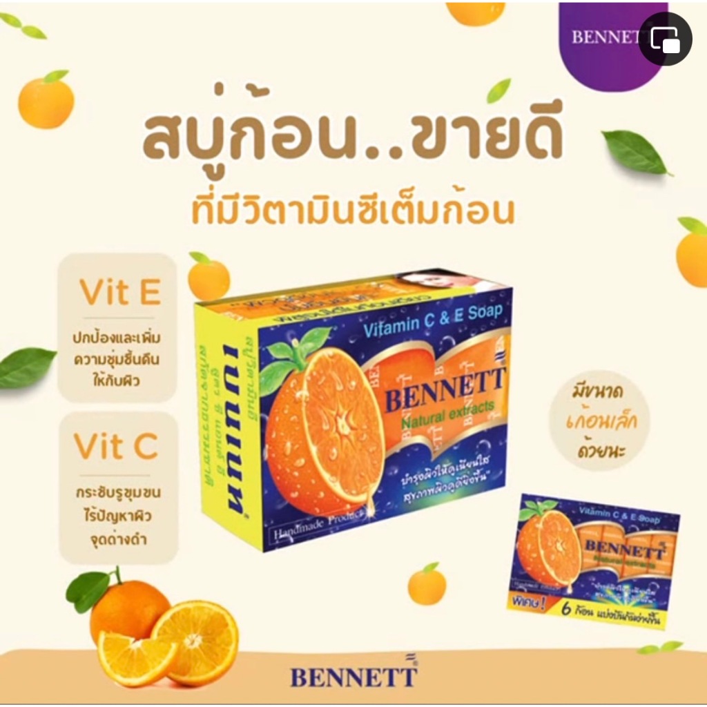 Bennet สบู่เบนเนท(แท้) ส้มก้อนเล็ก 25กรัม 1ก้อน และแพค6ก้อน