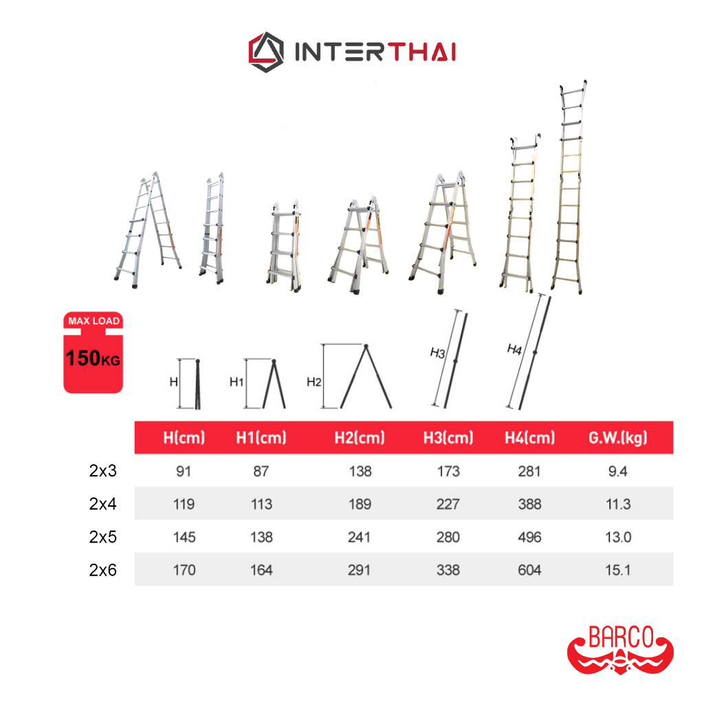 BARCO บันไดหัวล็อคยืดหด 2x5 4.96 เมตร รับได้ 150 กิโลกรัม