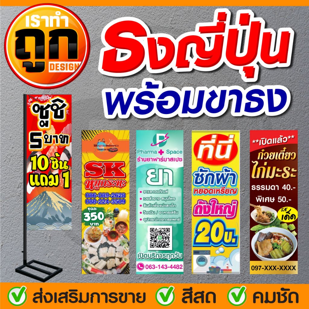 ไวนิลธงญี่ปุ่น ป้ายธงญี่ปุ่น ธงญี่ปุ่น 2 ด้าน และ หน้าเดี พร้อมชุดขาธง ติดตั้งง่าย ออกแบบฟรี จัดส่งไว ทนแดด ใช้งานได้นาน