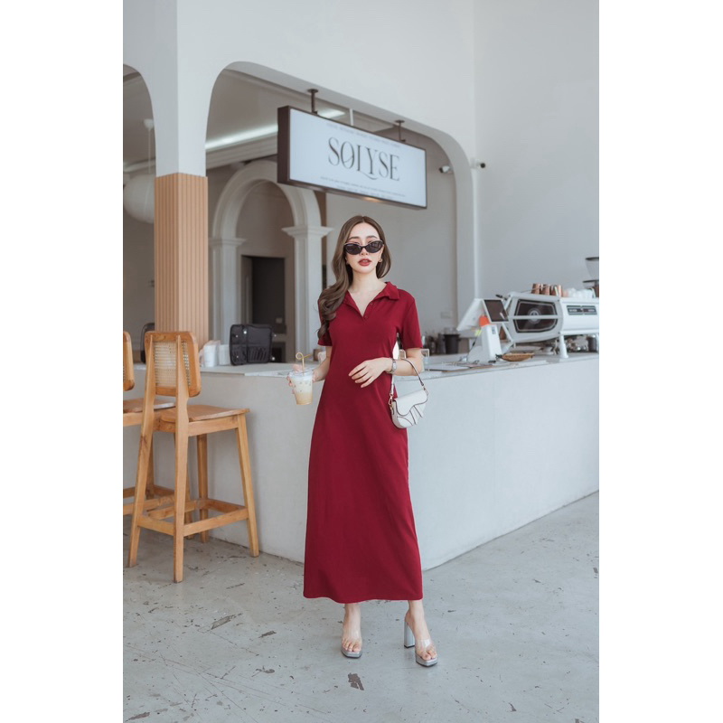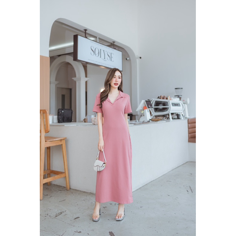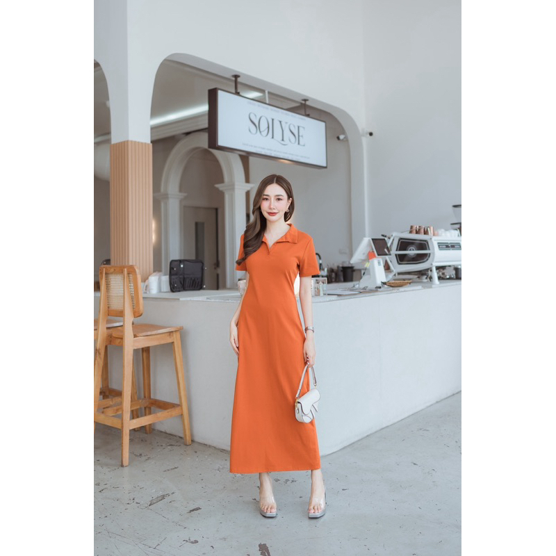 172 แม็กซี่เดรสคอปกแต่งกระดุมหน้า (ผ้าคัตตอนแท้)