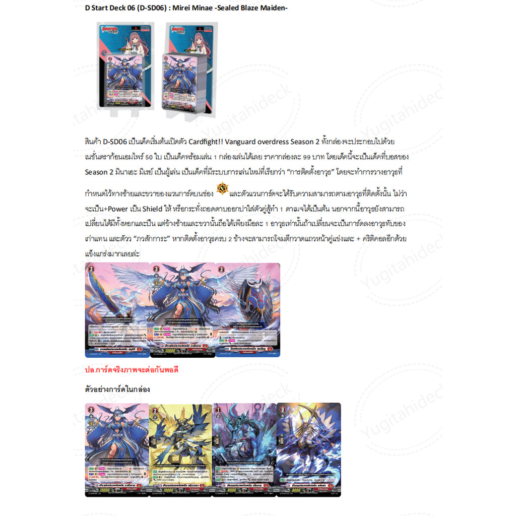 พน้อมส่ง แวนการ์ด D Overdress Start Deck 06: Mirei Minae 1 กล่อง พร้อมเล่น (VGT-D-SD06) ภาษาไทย